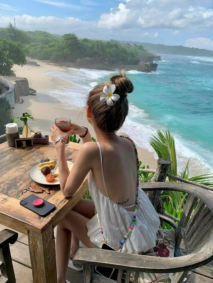 Nếu như bạn thích kiểu đi biển du lịch tự túc và chỉ muốn ngắm biển chụp những bức hình thật bình yên, nhẹ nhàng và chậm rãi thì hãy thử concept này nhé. Bạn hãy chọn các kiểu ghế đi du lịch hoặc bàn ăn, sau đó đặt ở nơi có view đẹp nhất và lúc này chỉ cần ngồi và và để máy chụp từ phía sau là đã có ảnh đẹp mang về rồi.