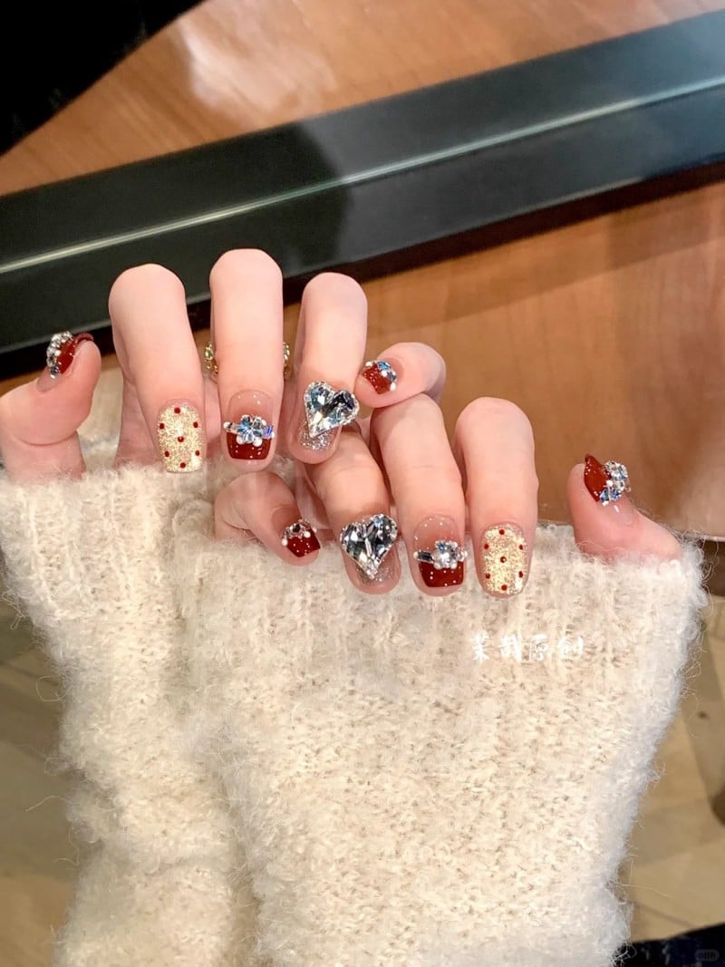 Mẫu nail đính đá sáng tạo dành cho người trung niên có thể để thường ngày hay khi tham gia vào những sự kiện quan trọng.