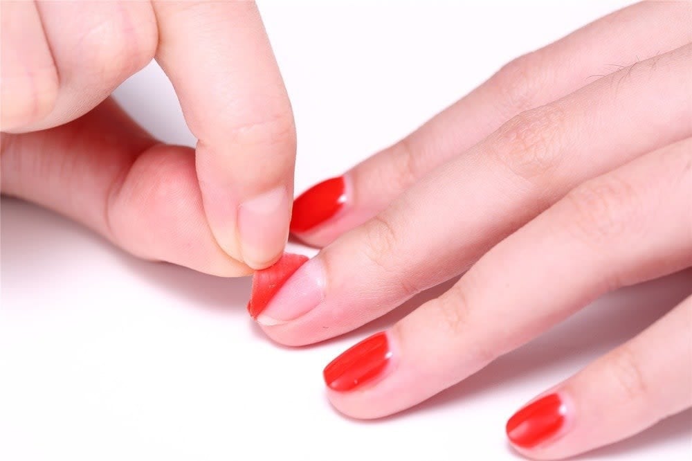 Khi muốn loại bỏ, bạn chỉ cần dùng đầu móng tay hoặc một cây đẩy da nhẹ nhàng cạy nhẹ ở phần chân móng hoặc cạnh móng để tạo ra một mép hở. Từ đó, từ từ kéo và lột toàn bộ mảng sơn ra khỏi móng. Thao tác này hoàn toàn không gây đau đớn hay tổn thương cho bề mặt móng thật.