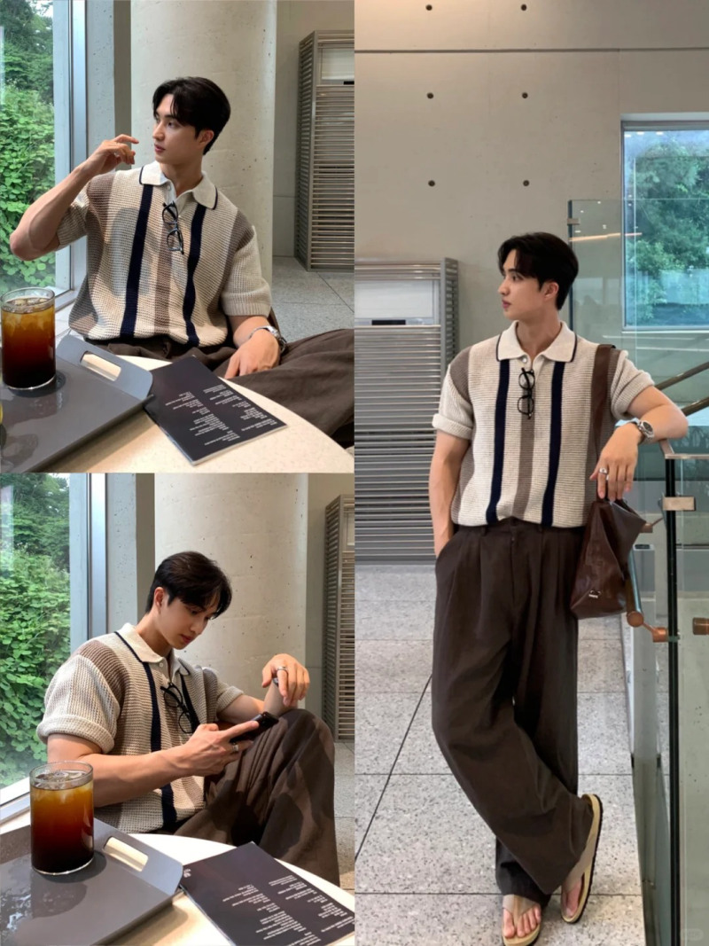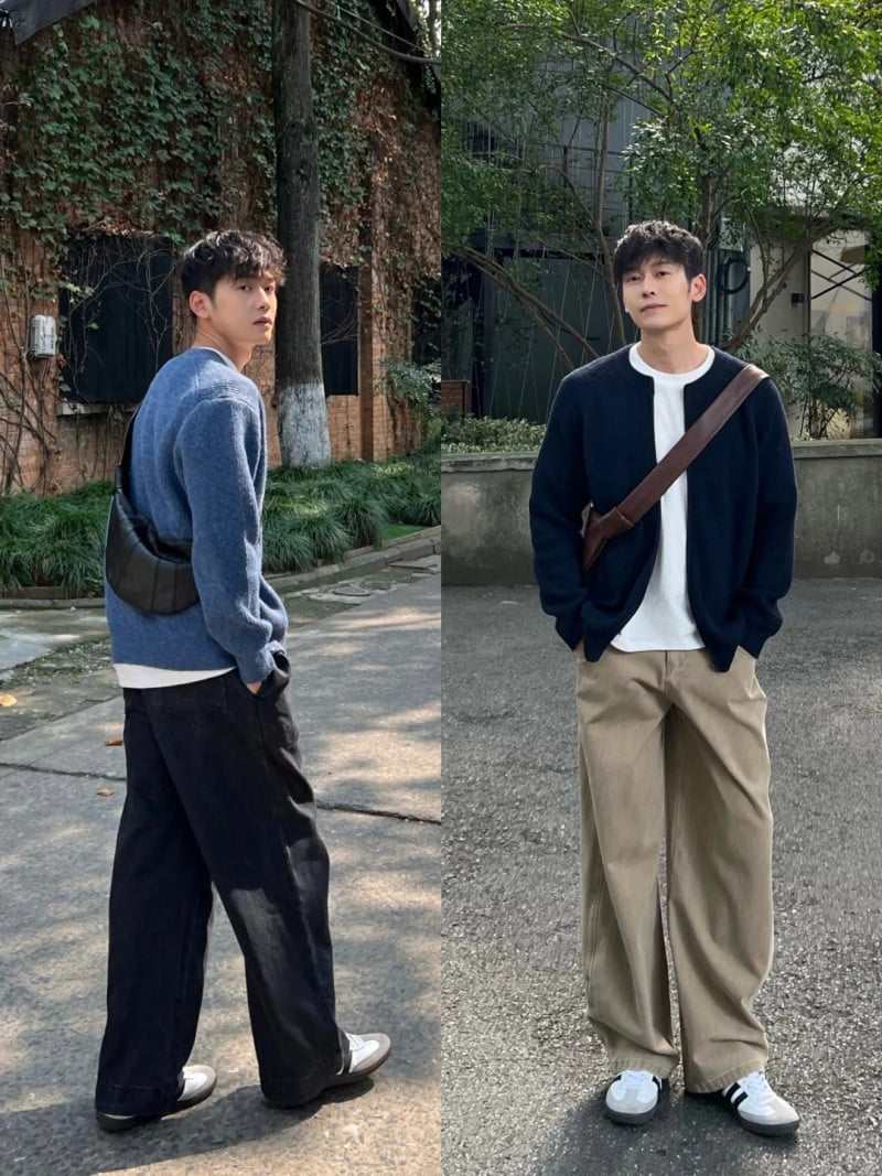Phong cách phối đồ Hàn Quốc mang lại cảm giác trẻ trung, chỉn chu mà không quá cầu kỳ. Nam giới có thể chọn áo cardigan mỏng mix cùng sơ mi trắng và quần âu ống đứng. Những item như áo len cổ tròn, quần vải, giày sneaker trắng cũng là lựa chọn phổ biến.