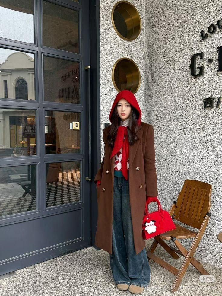 Kết hợp cùng áo khoác dạ đỏ