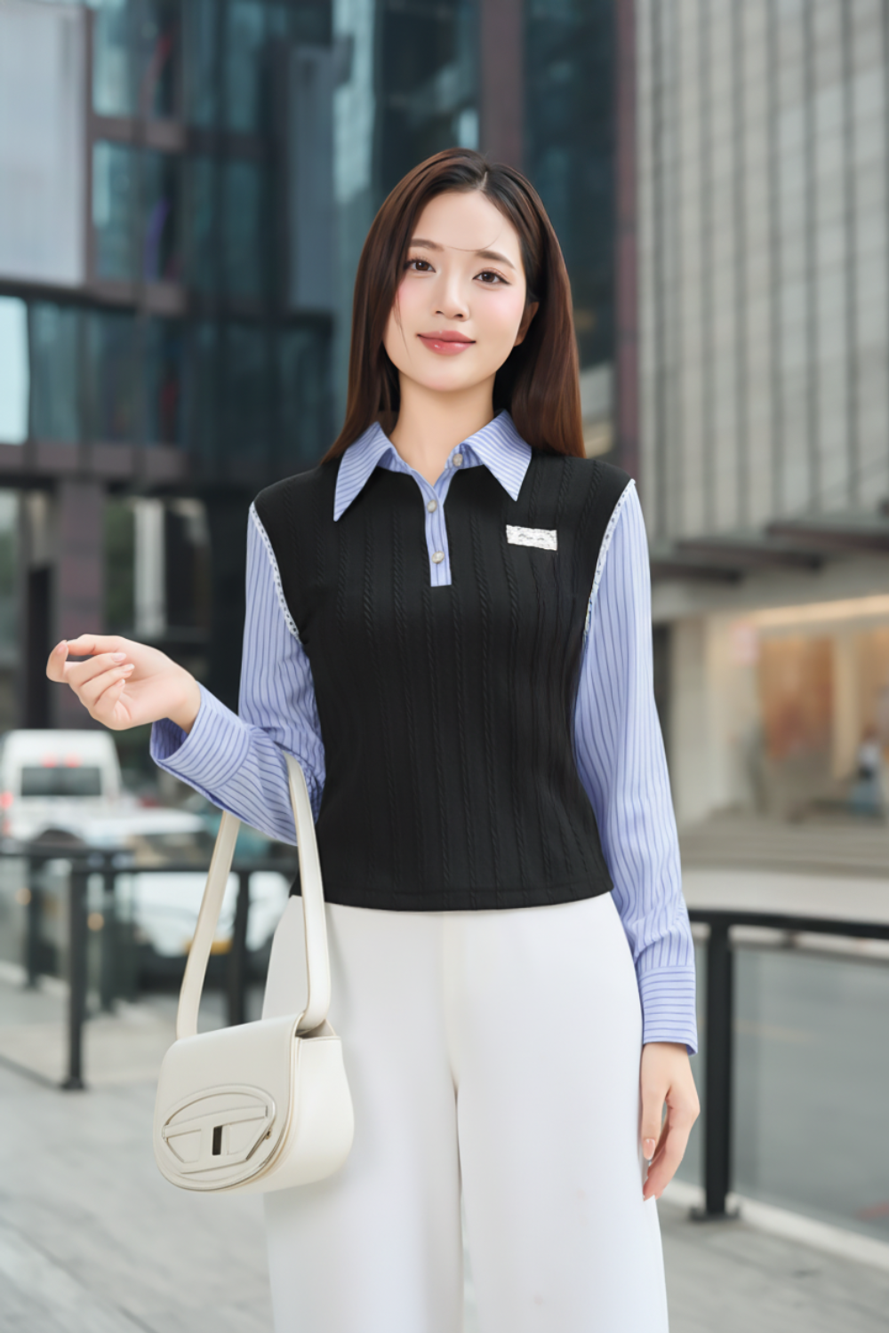 Một thiết kế "2 trong 1" độc đáo từ Younger - mã 5YASD2514. Sự kết hợp giữa phần thân len dệt vặn thừng và cổ sơ mi kẻ sọc tạo hiệu ứng layer giả gile cực xinh. Phong cách preppy trẻ trung, phù hợp cả đi học và đi làm. Có 3 màu (Nâu, Đen, Ghi) dễ mặc. Size S-XL (40-64kg). Đặt hàng ngay để mặc đẹp mà không cần tốn công phối đồ!