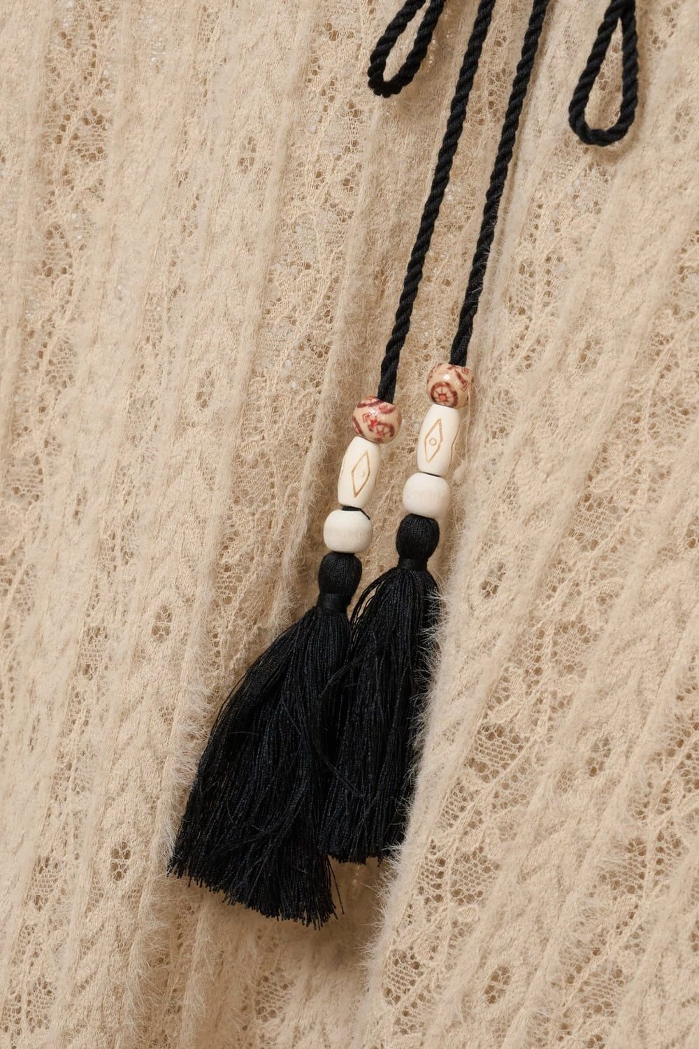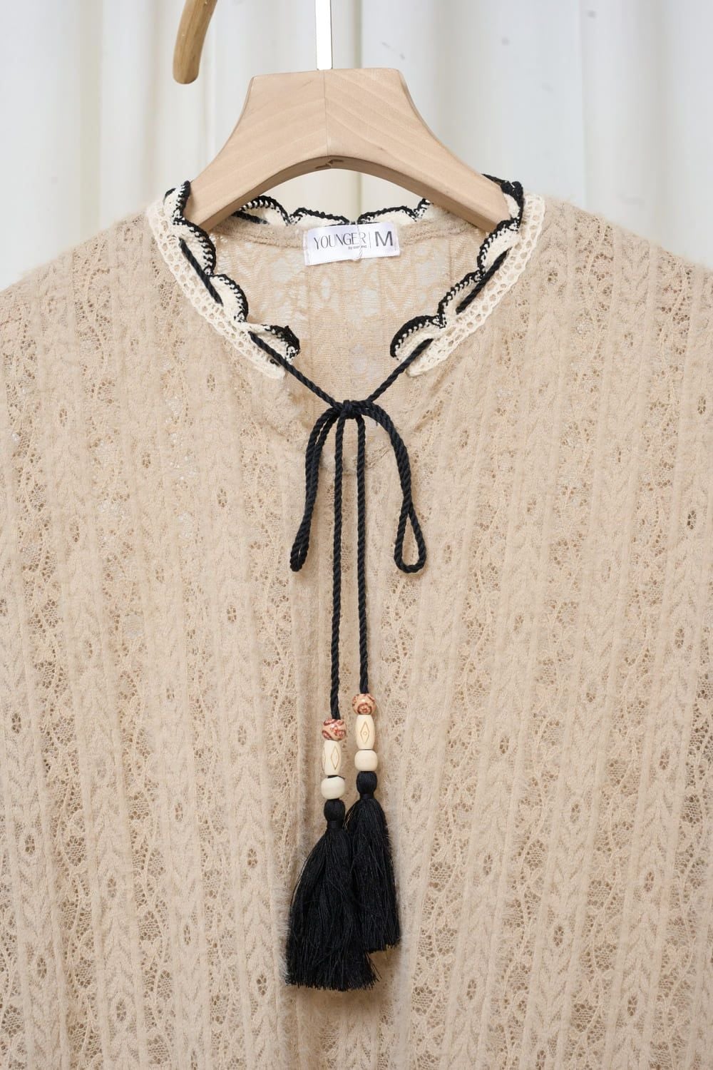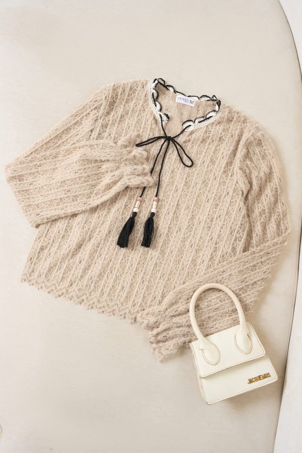 Áo kiểu nữ vải ren mềm tay dài phối cổ dây mộc