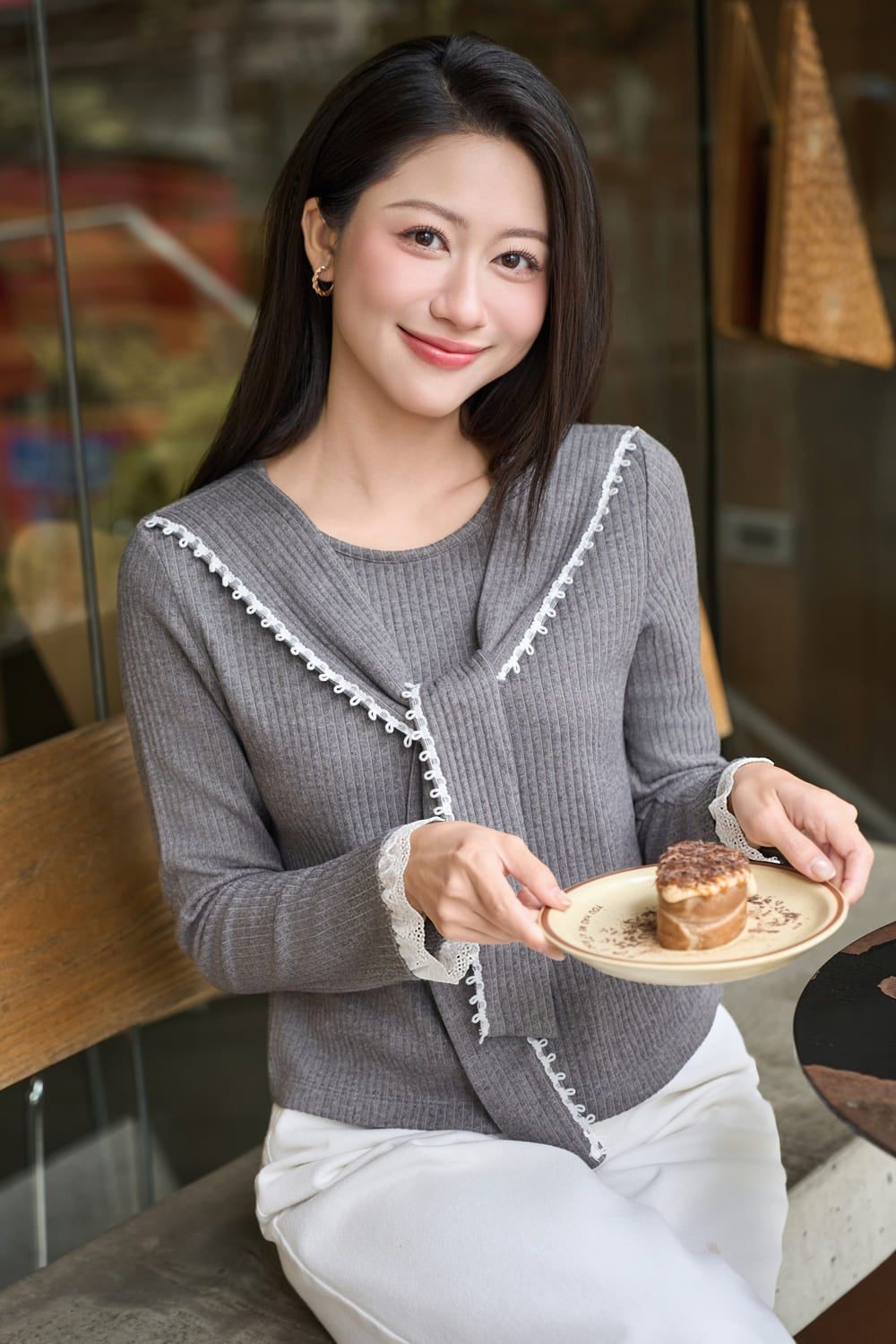 Áo len tăm nữ dài tay cổ phối giả khăn thắt nơ viền bèo