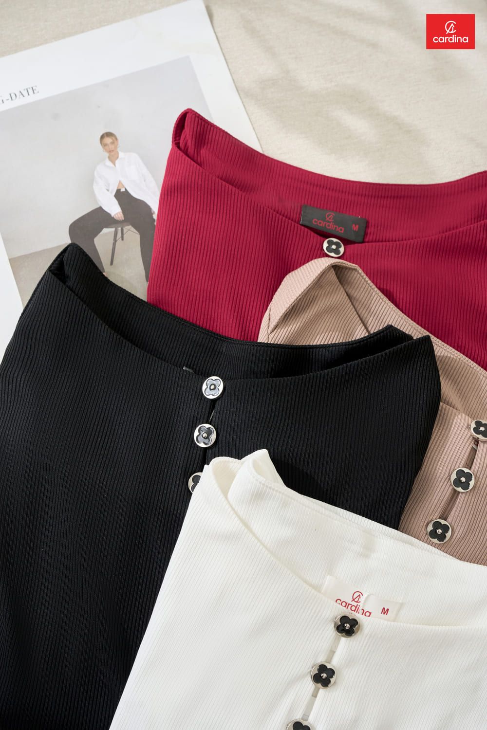 Áo dài tay cổ thuyền của Cardina là lựa chọn hoàn hảo cho phong cách thanh lịch, nữ tính và tôn dáng. Chất liệu tăm cotton mềm mại, co giãn tốt, ôm nhẹ nhàng cơ thể. Thiết kế cổ thuyền cách điệu duyên dáng, kết hợp chi tiết khuy trang trí tinh tế trước ngực, tạo điểm nhấn độc đáo và nổi bật. Sản phẩm dễ dàng phối cùng quần jean, chân váy, quần âu, phù hợp cho mọi hoạt động hàng ngày. Sắm ngay để có một outfit hoàn hảo!