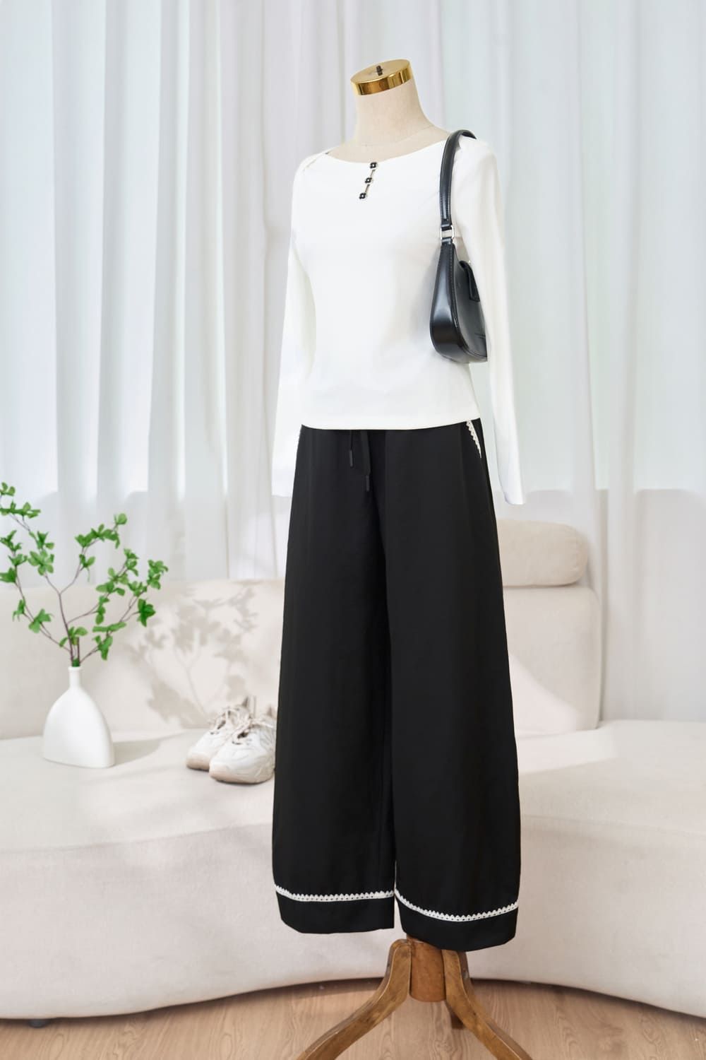Áo thun cotton nữ dài tay cổ thuyền cách điệu vai xếp