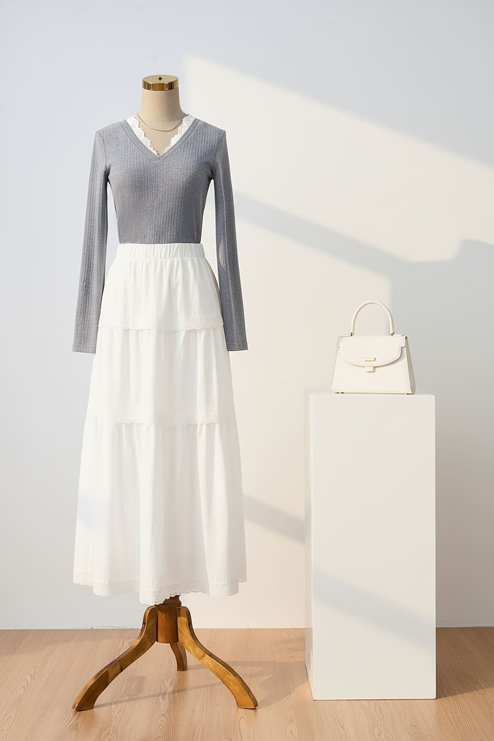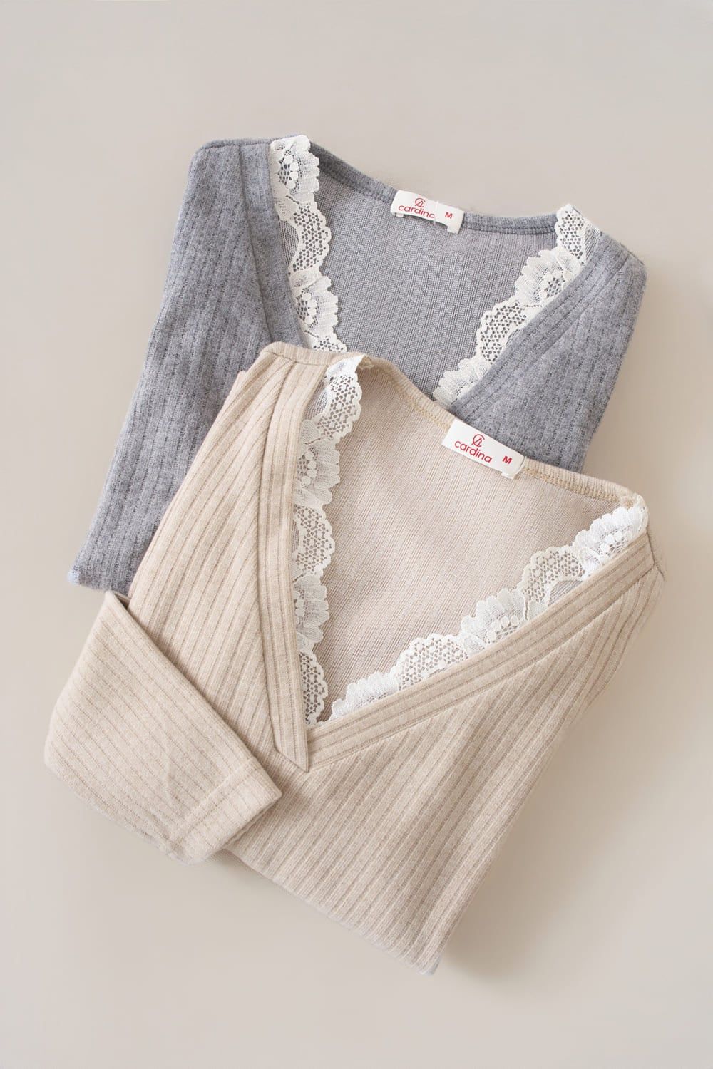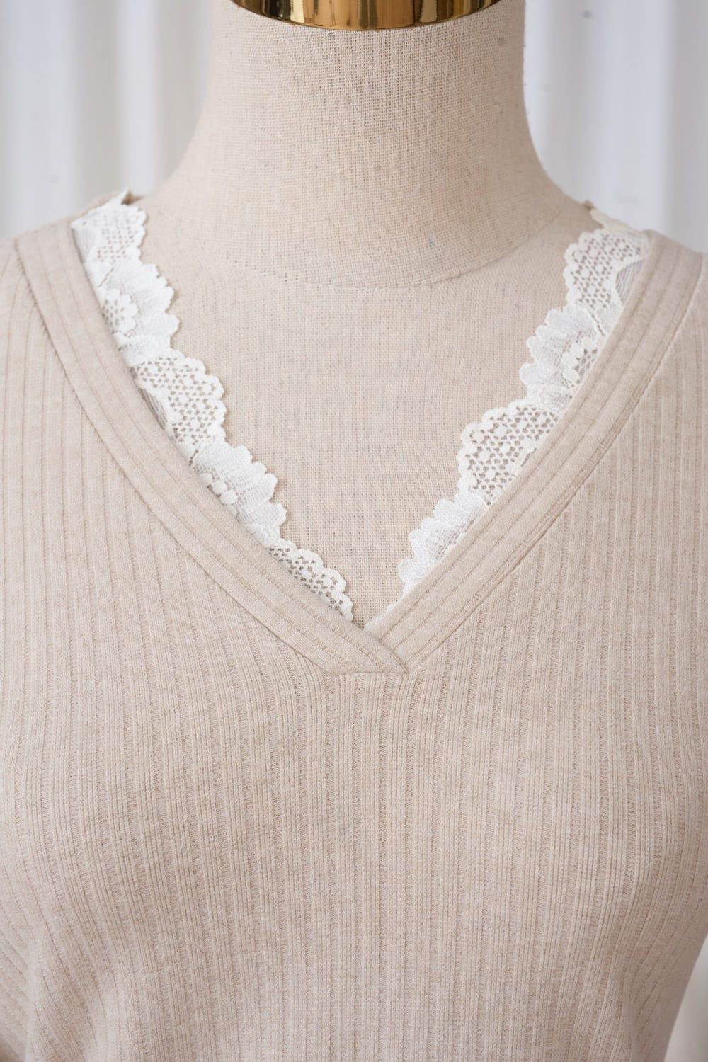 Áo kiểu Cardina Vải Nỉ lông cừu dài tay cổ tim phối ren