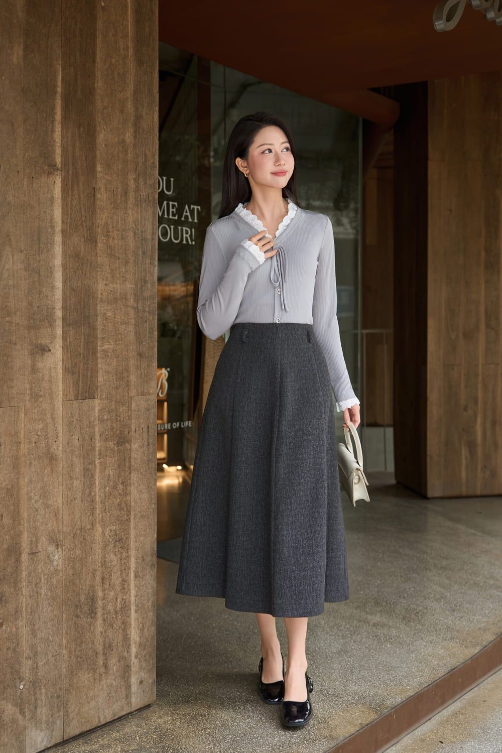Áo dài tay dáng ôm phối cổ tim bèo