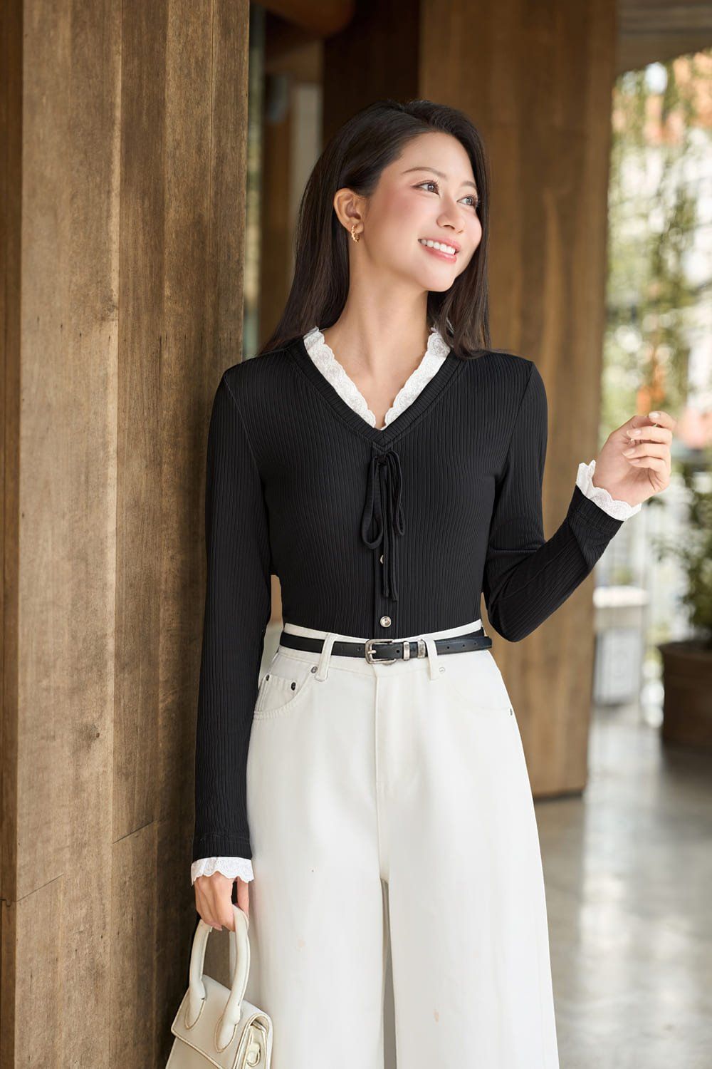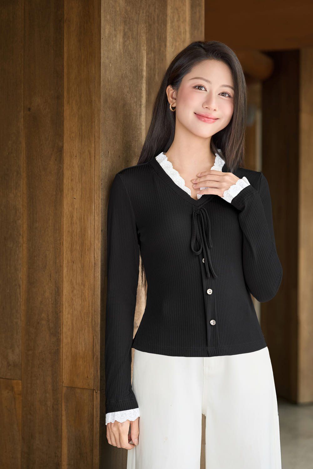 Áo len tăm đũa mềm mịn, mang lại cảm giác dễ chịu và giữ ấm nhẹ nhàng cho ngày se lạnh. Thiết kế dáng ôm tôn đường cong, cổ tim khoét sâu cùng chi tiết phối ren bèo tinh tế ở cổ và tay áo, tạo điểm nhấn nữ tính, điệu đà. Áo có dây buộc nhẹ nhàng, dễ dàng điều chỉnh. Dễ dàng phối cùng chân váy chữ A hoặc quần âu công sở. Sản phẩm có size từ S đến XXL. Sắm ngay để thêm item thanh lịch, đa năng vào tủ đồ!