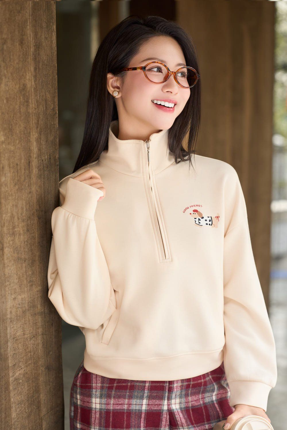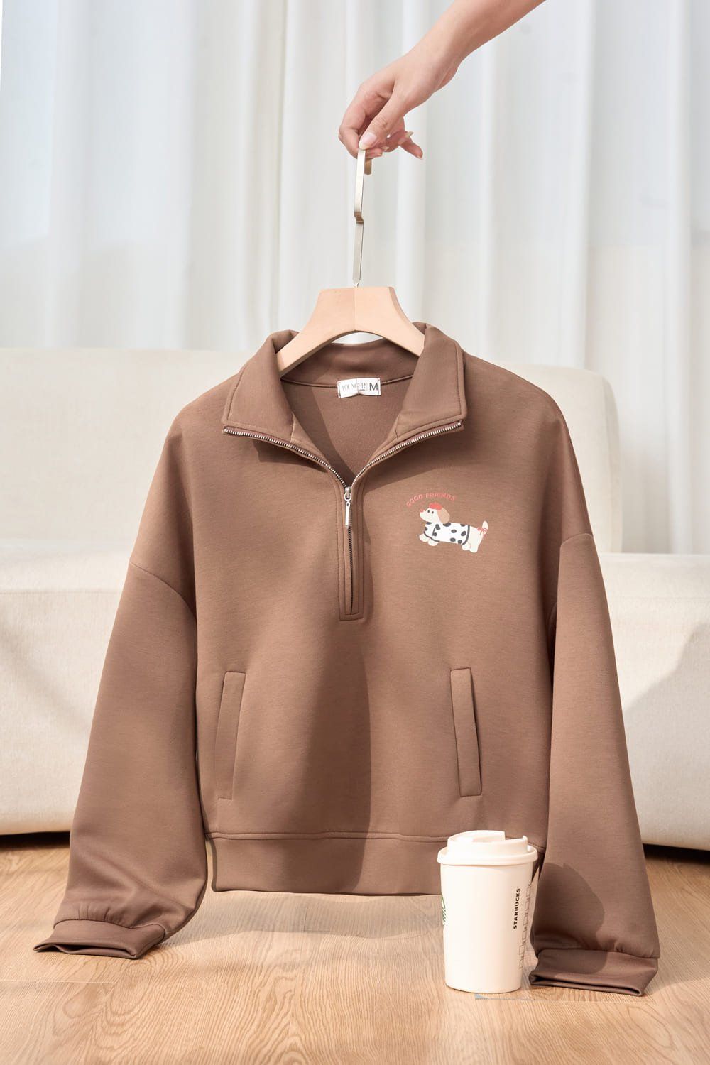 Áo dài tay dáng suông bo gấu cổ có khóa