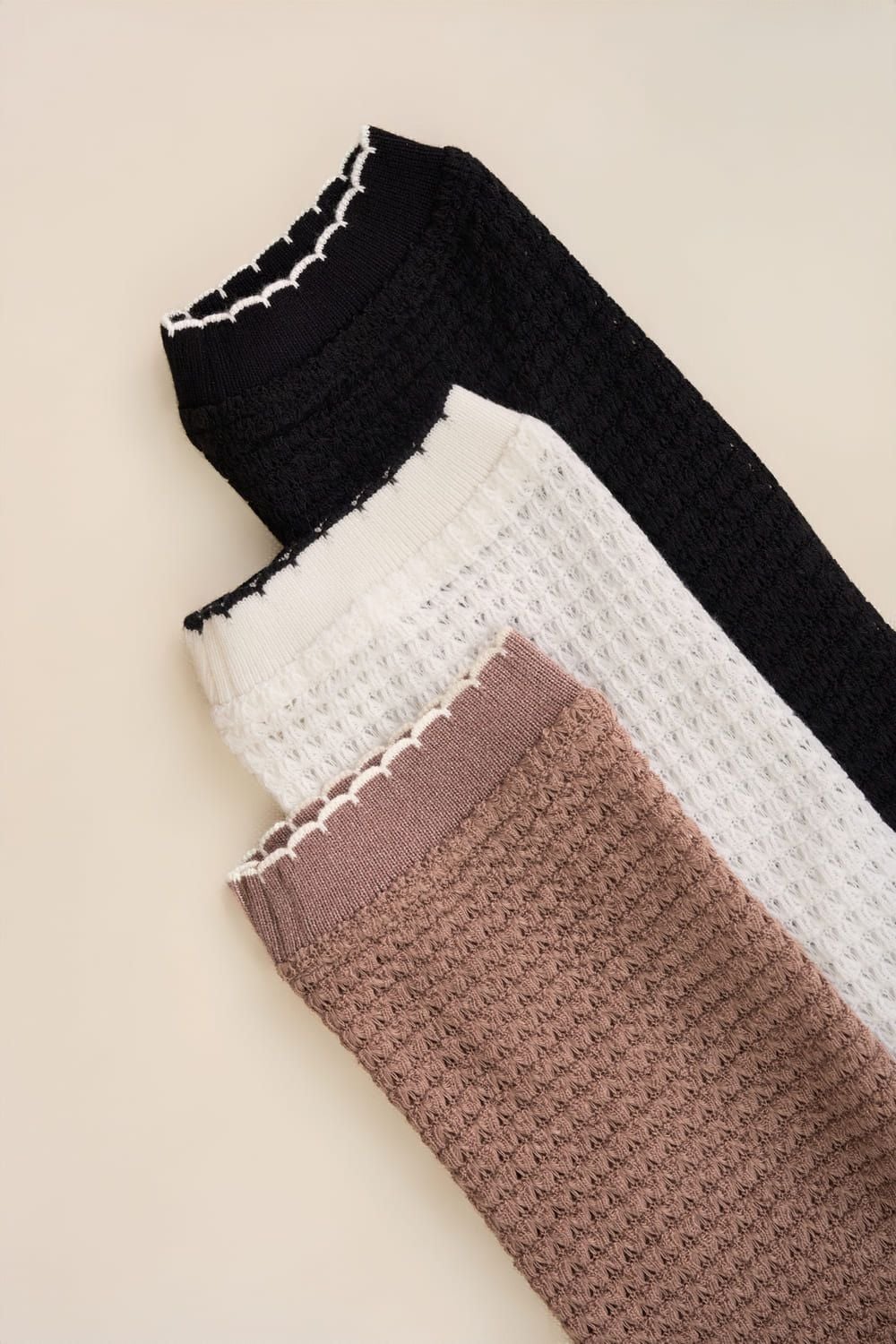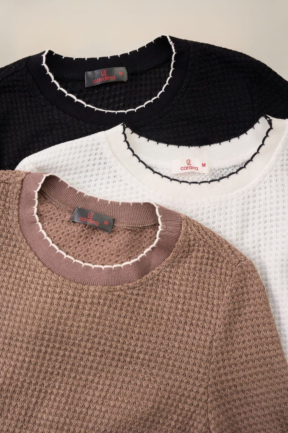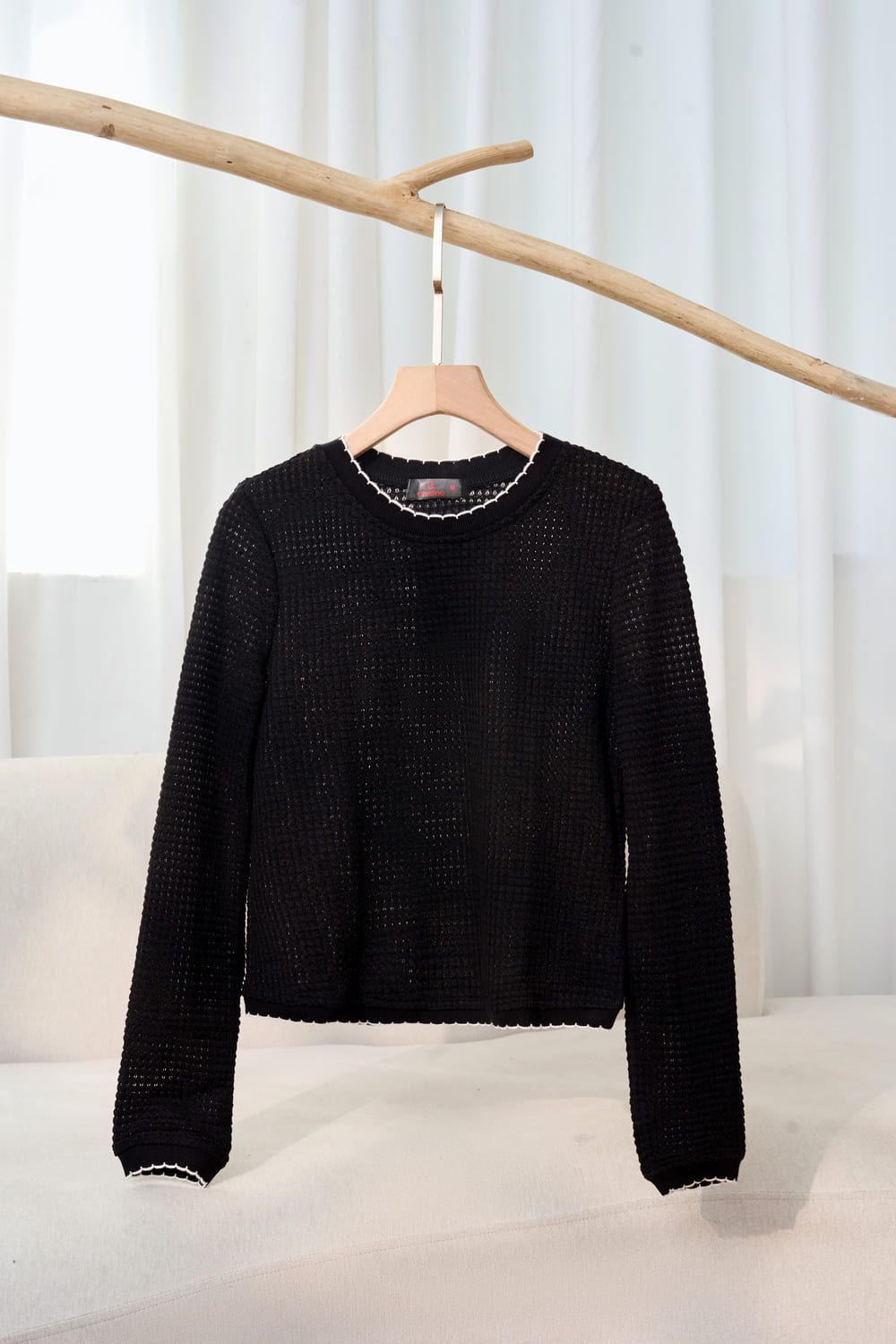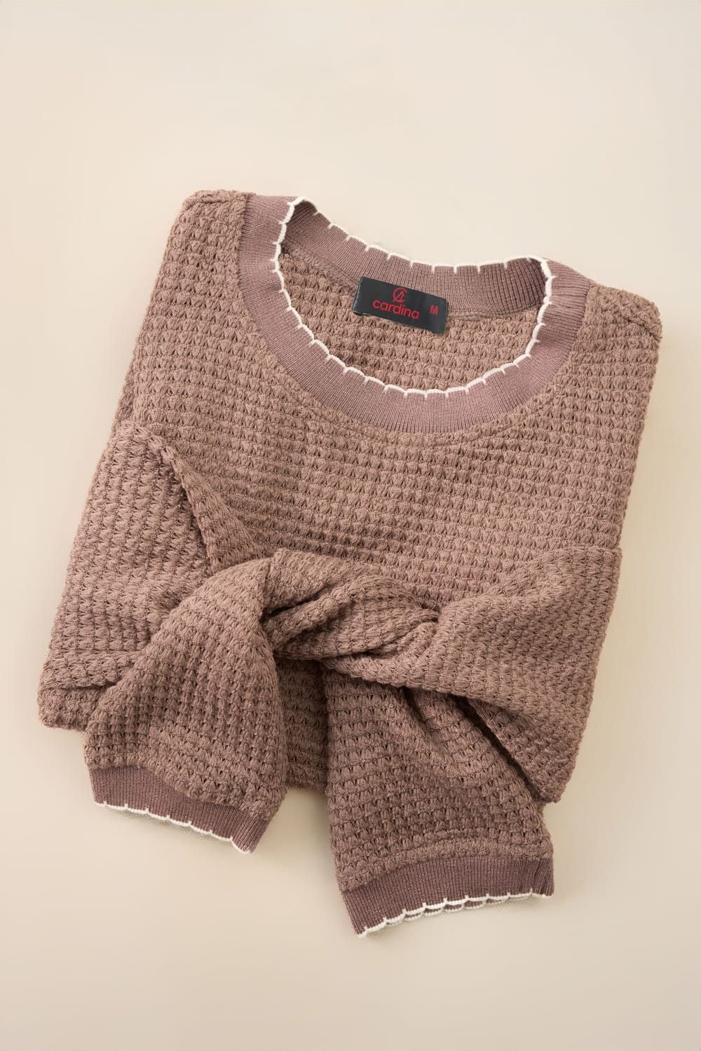 Áo len nữ dệt tổ ong dài tay cổ tròn phối viền