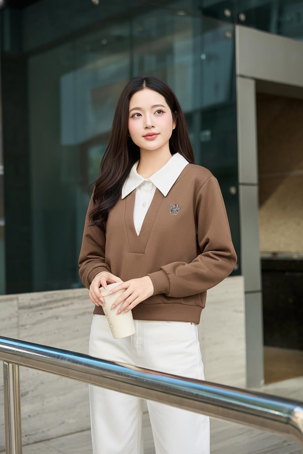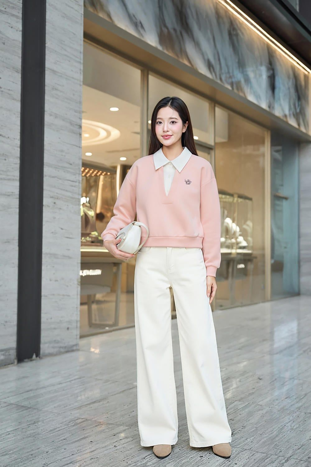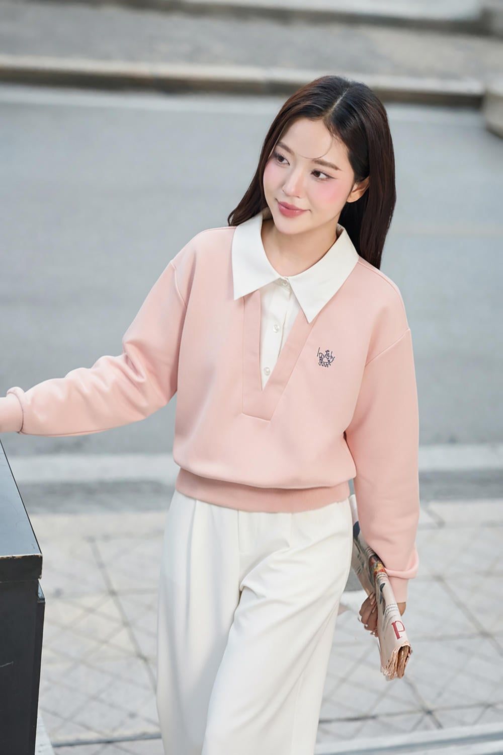 Áo Umi dài tay dáng suông phối cổ đức thanh lịch