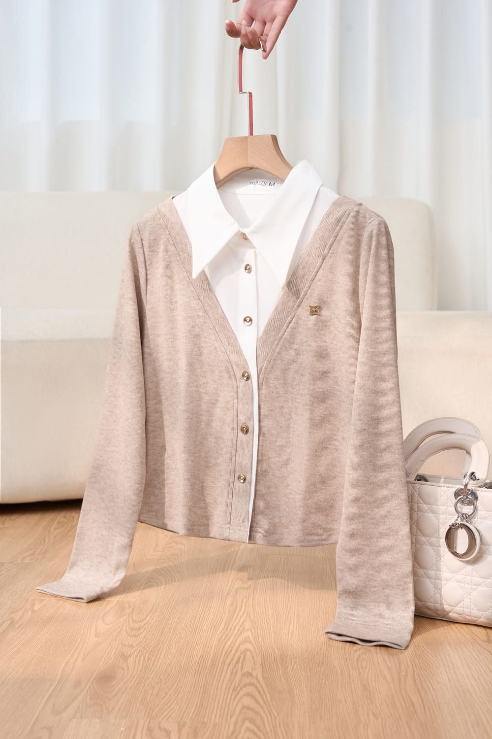 Áo nỉ tăm lông cừu dài tay phối cổ sơ mi trắng