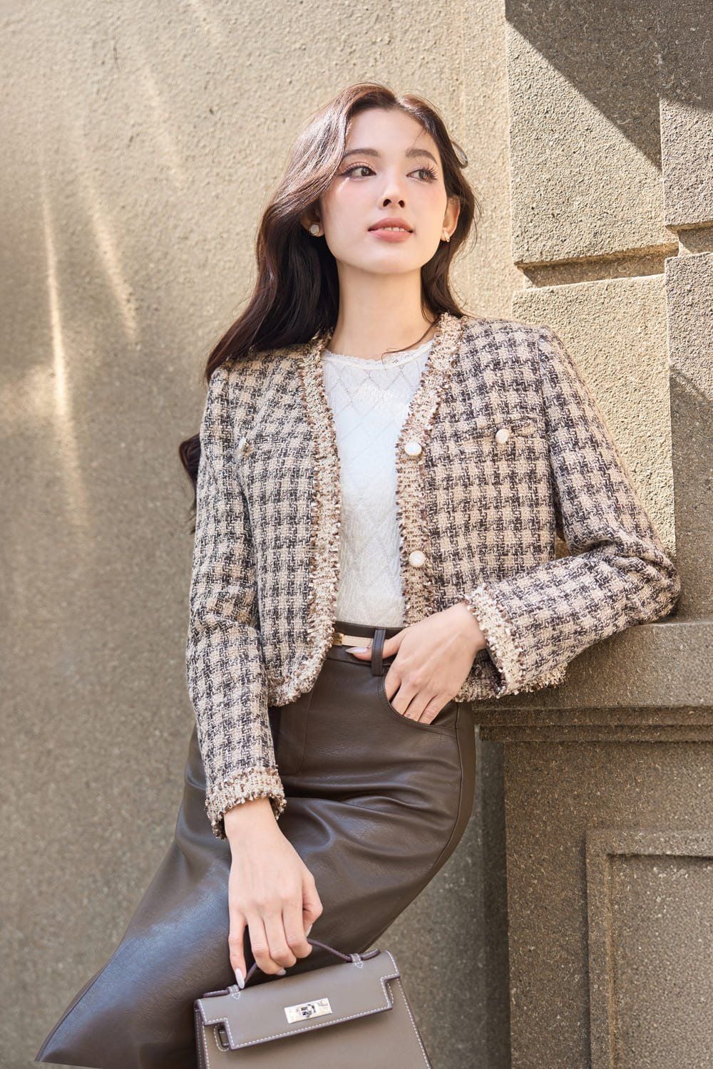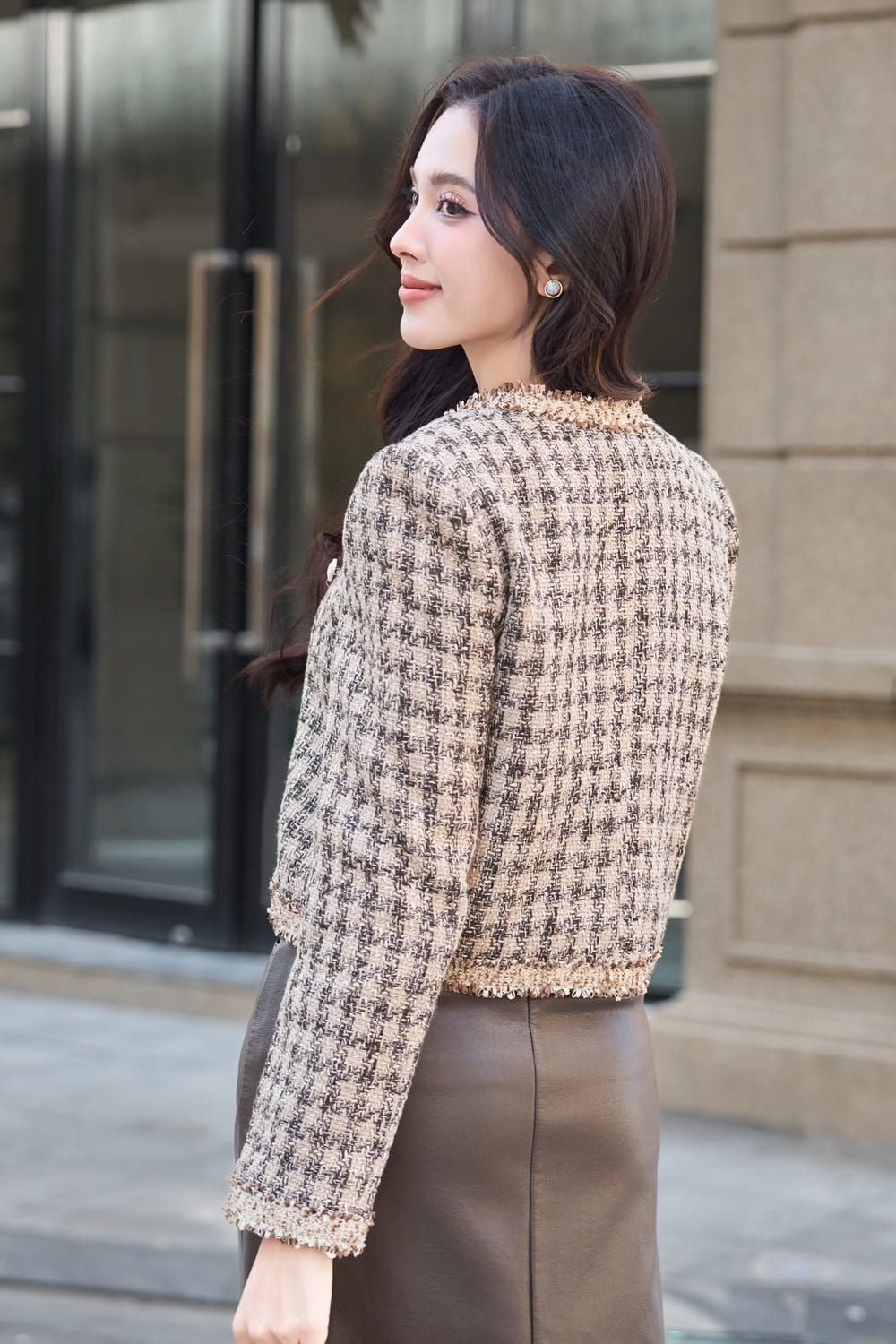 Áo khoác dạ Tweed Bliss sang trọng, thiết kế dáng ngắn trẻ trung hack dáng. Cấu trúc 2 lớp dày dặn với lớp lót Habutai mềm mại, êm ái tuyệt đối với làn da. Họa tiết kẻ ô tinh tế, là điểm nhấn hoàn hảo cho mọi outfit thu đông. Đủ size S-XL. Mua ngay để tỏa sáng trong mọi bữa tiệc!