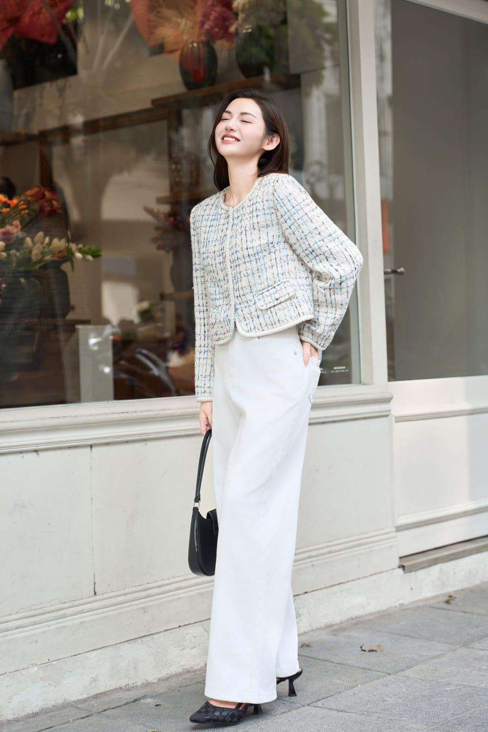 Áo khoác dáng ngắn phối viền cổ tròn