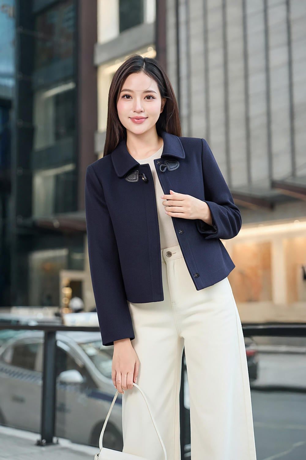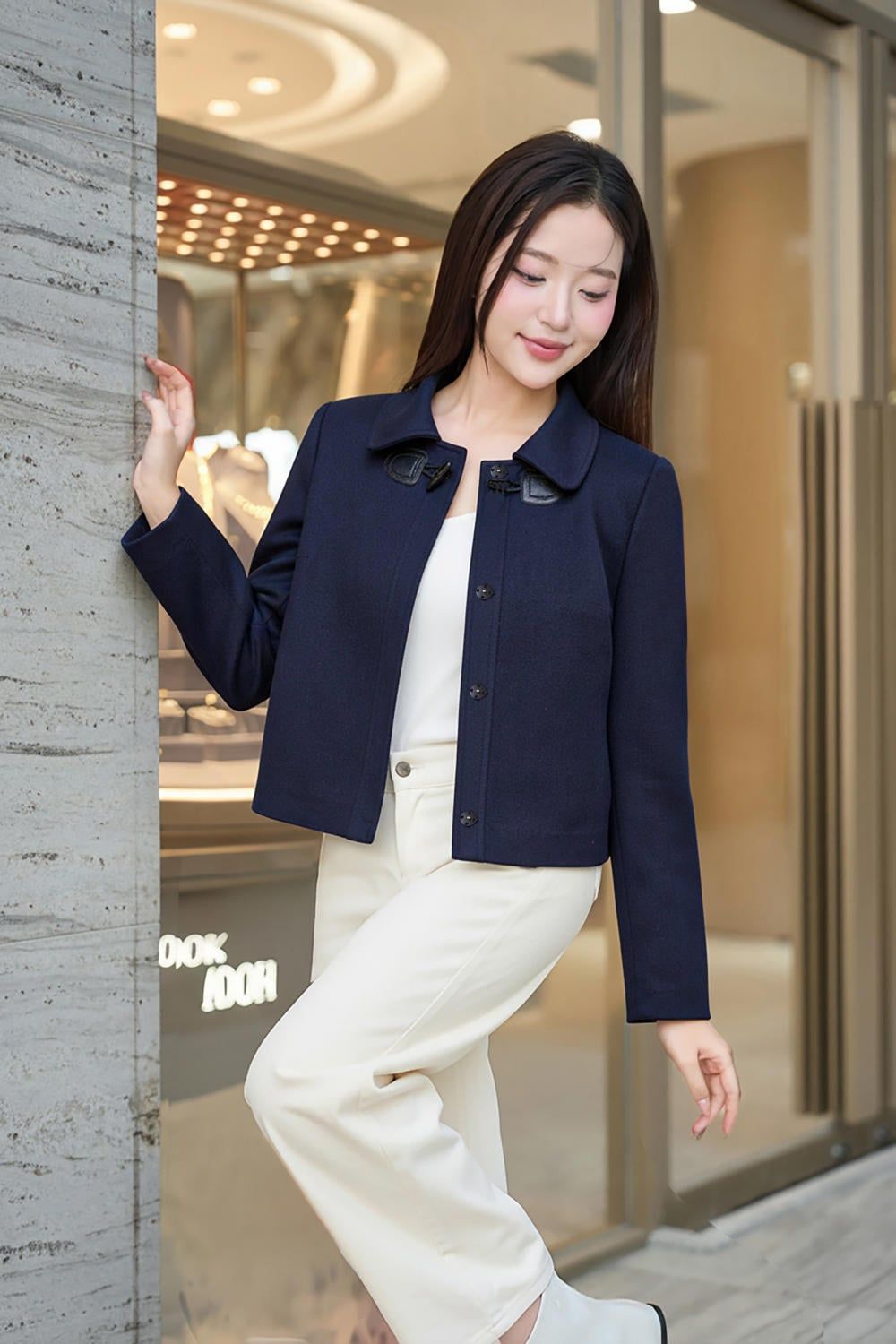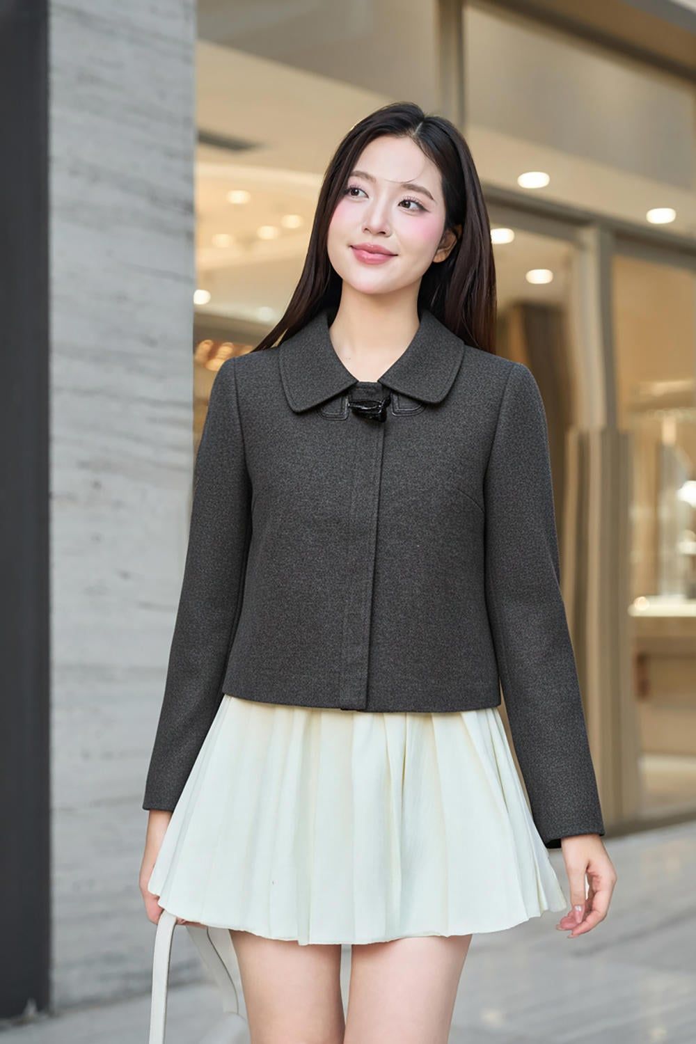 Áo khoác dáng suông ngắn cổ đức