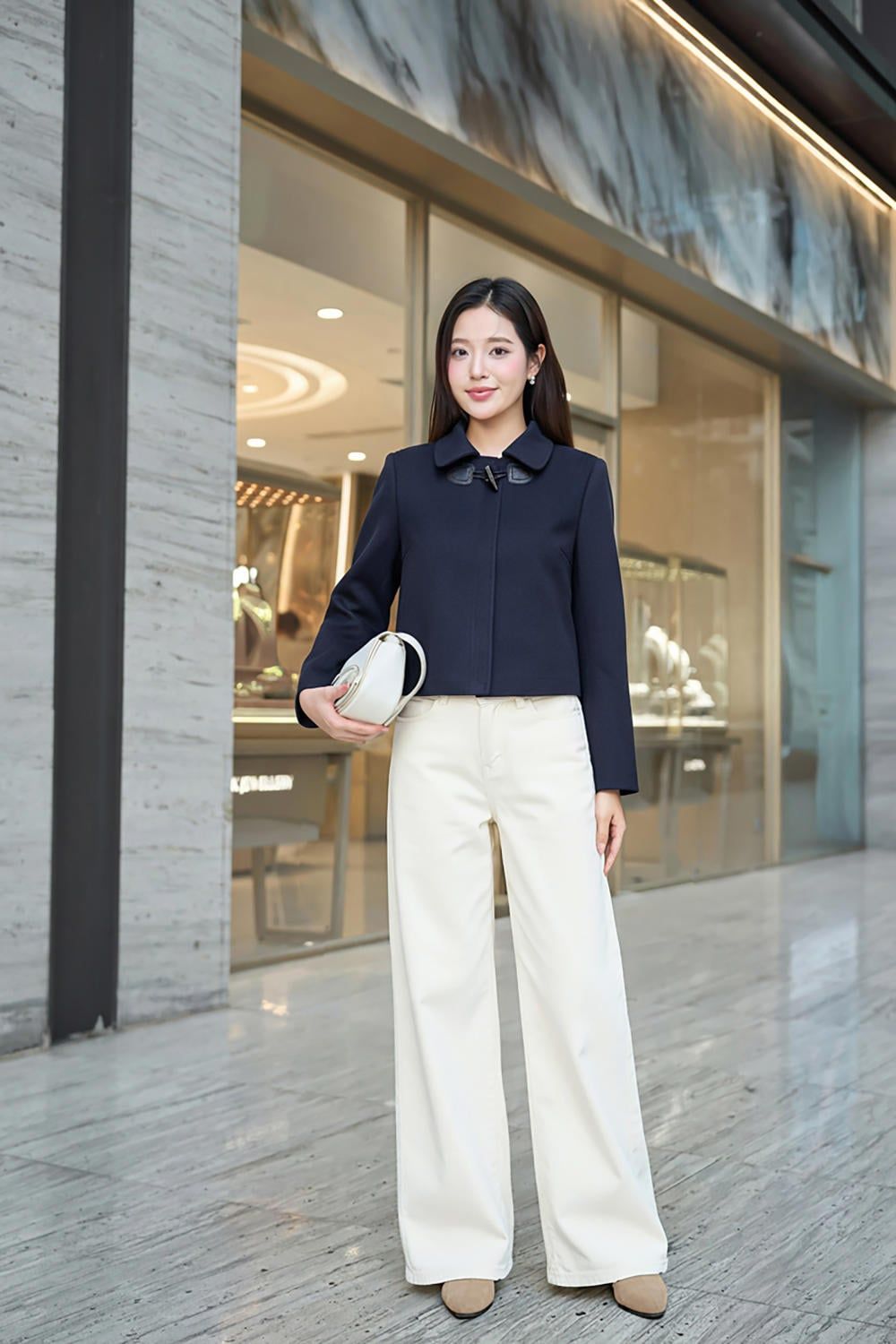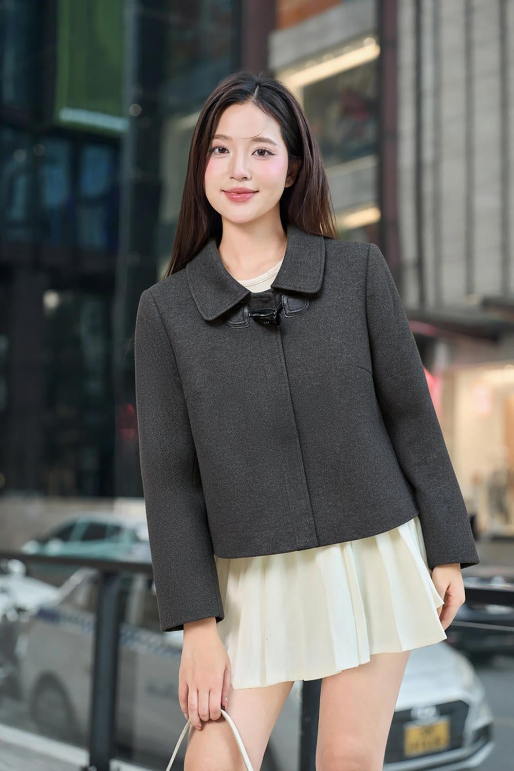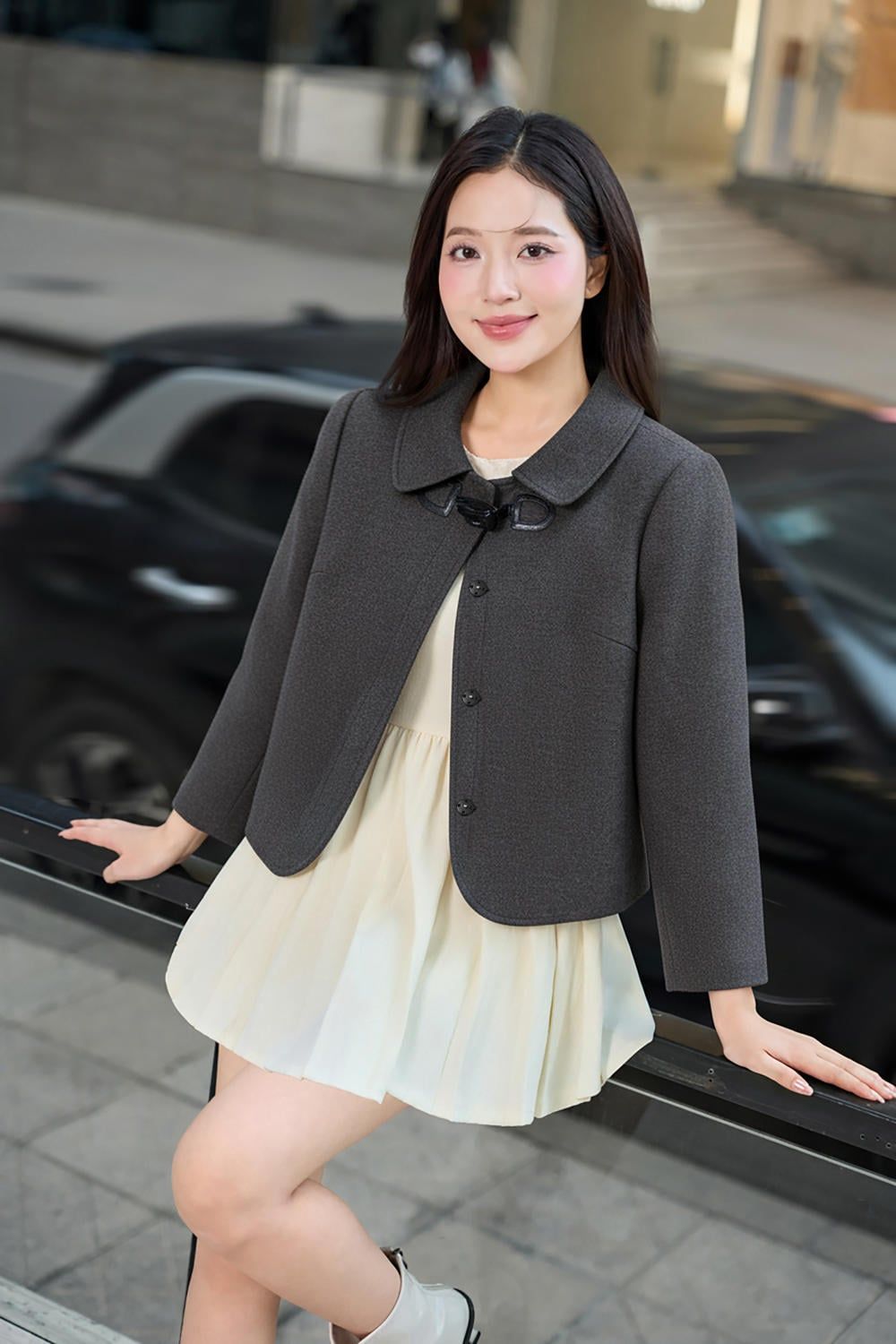 Áo khoác dáng suông ngắn cổ đức