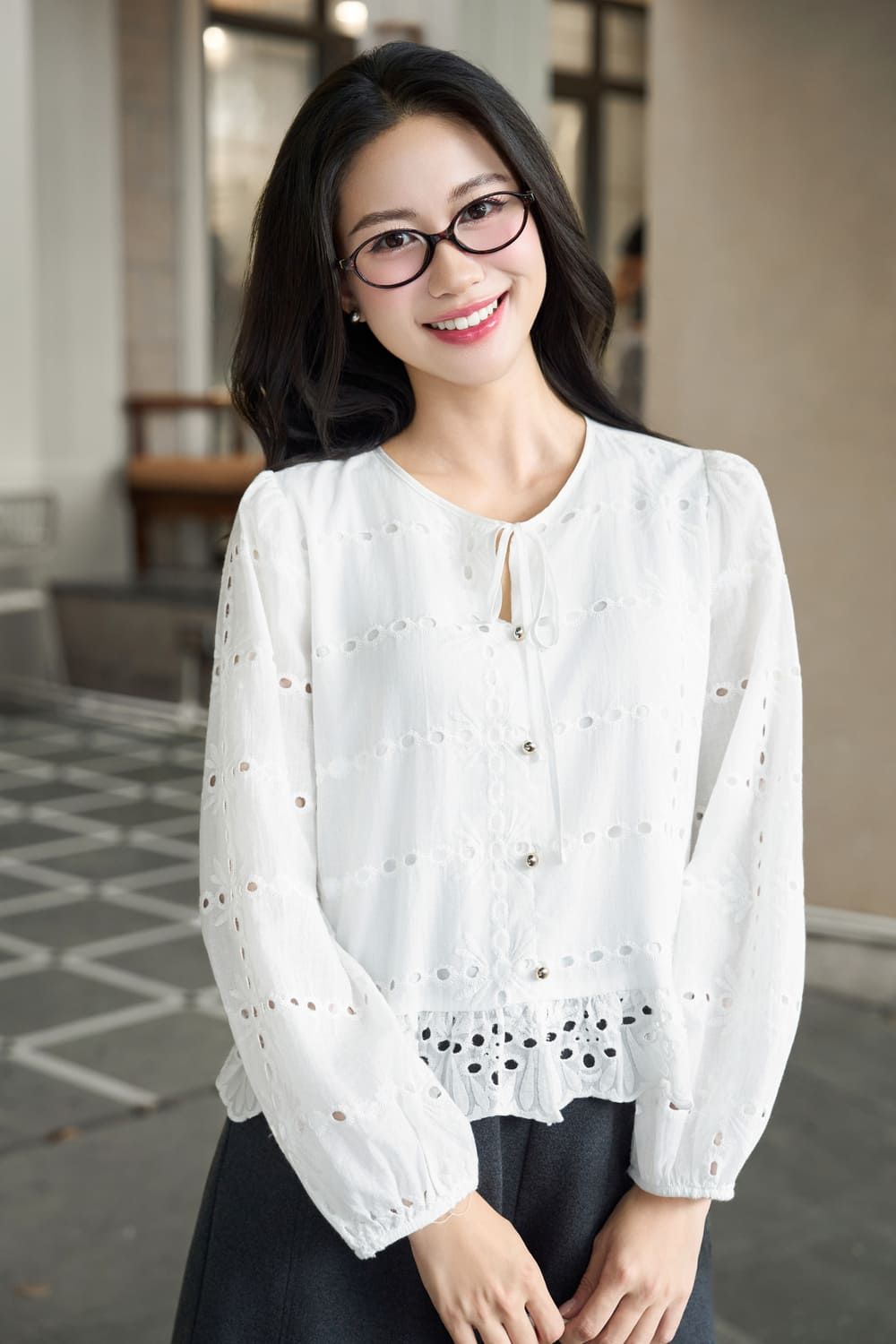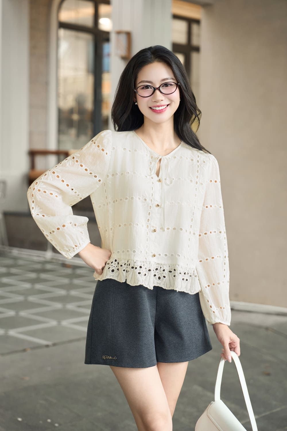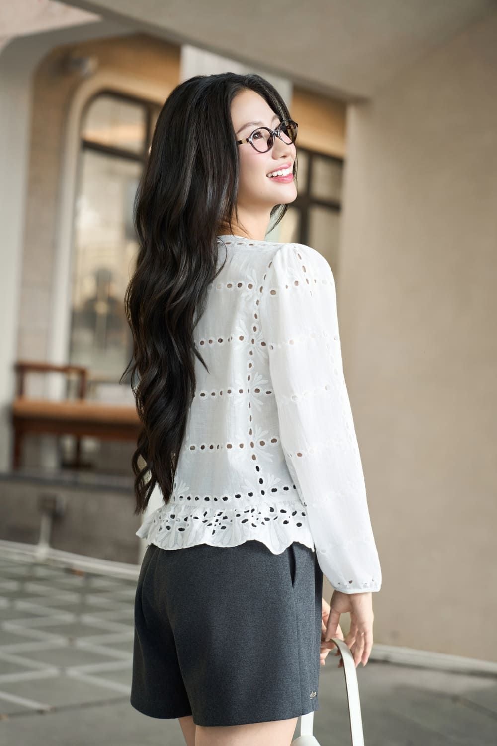 Áo kiểu dài tay của Cardina mang đến vẻ đẹp nhẹ nhàng, bay bổng. Chất liệu vải thô thêu mềm mại, mỏng nhẹ, thoáng mát, tạo cảm giác thoải mái tối đa khi mặc. Thiết kế cổ tròn kín đáo, tay dài duyên dáng, kết hợp chi tiết ren tinh tế ở gấu áo, giúp tôn lên vẻ nữ tính và duyên dáng.