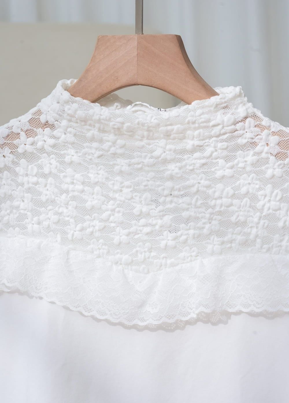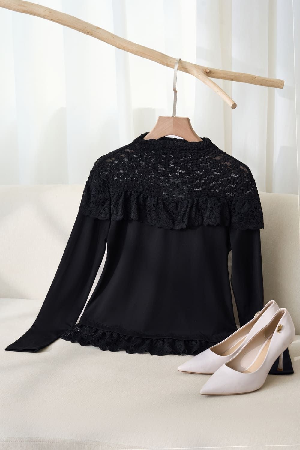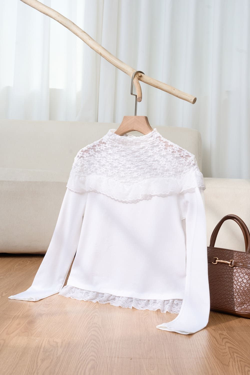 Áo kiểu dài tay dáng ôm cổ leo phối vai