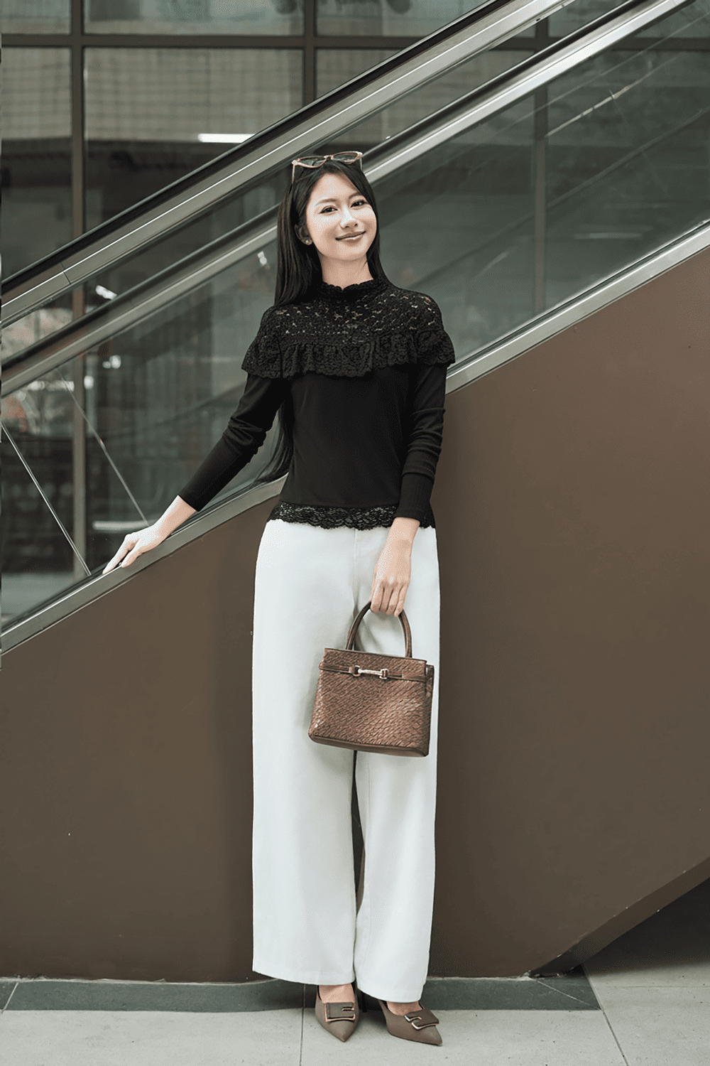 Chiếc Áo kiểu Younger mang đến sự kết hợp hoàn hảo giữa nét nữ tính và hiện đại. Chất liệu Cotton borip Hàn mềm mại, thoáng khí, kết hợp tinh tế với chi tiết ren phối vai, tạo nên điểm nhấn ngọt ngào, quyến rũ. Dáng áo ôm nhẹ, tôn lên đường nét cơ thể, cùng cổ leo cao duyên dáng. Áo có các màu cơ bản (Đen, Trắng) dễ dàng phối cùng quần jeans hoặc chân váy. Lý tưởng cho những buổi dạo phố hoặc hẹn hò lãng mạn. Sắm ngay để thêm nét duyên dáng vào tủ đồ!