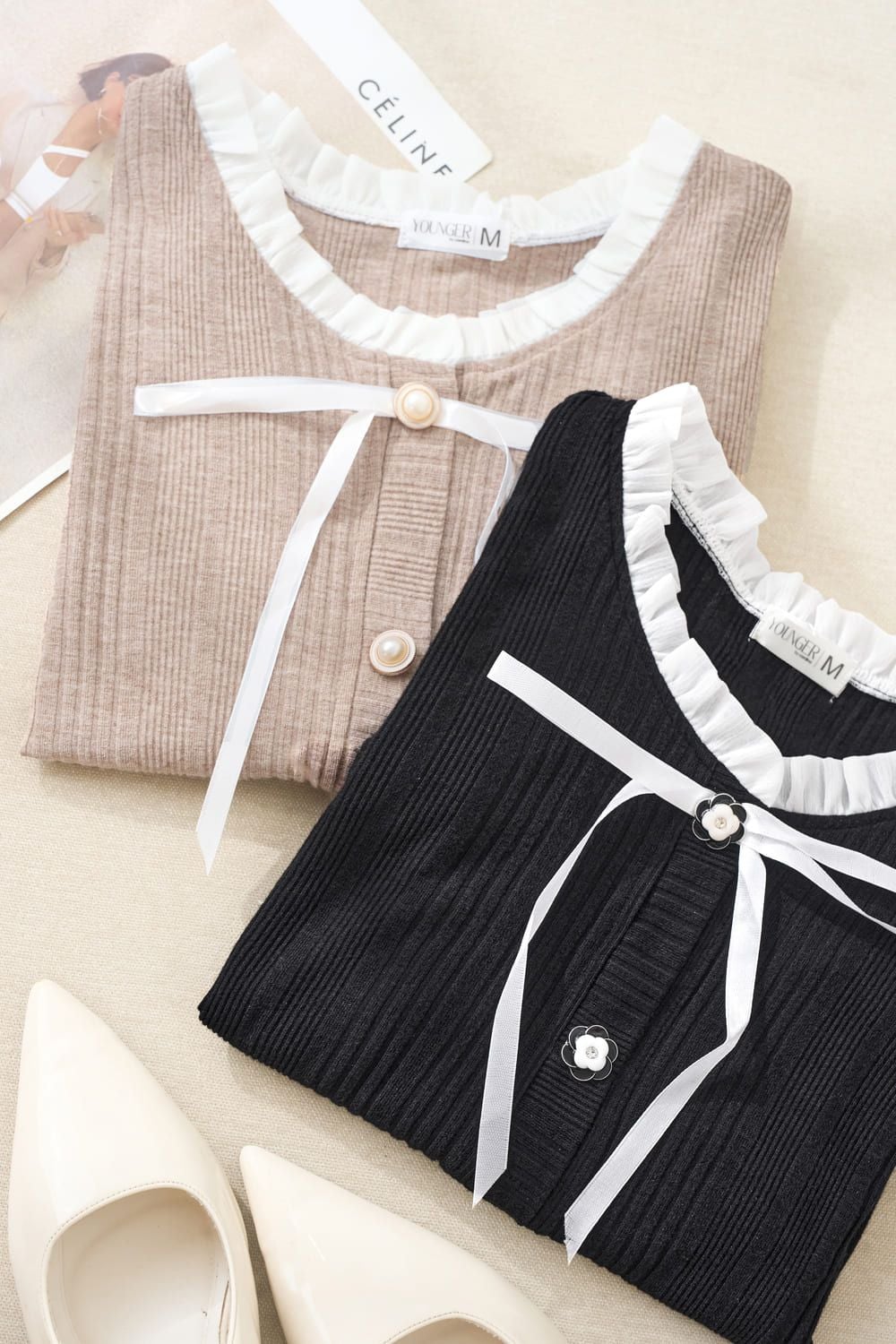 Áo len tay lỡ của Cardina mang đến vẻ ngoài ngọt ngào, nữ tính và thanh lịch. Chất liệu len sọc cao cấp, co giãn tốt và có khả năng giữ ấm vừa phải. Thiết kế tay lỡ trẻ trung, điểm nhấn là chi tiết cổ bèo viền ren kết hợp với dây nơ buộc tinh tế, tạo vẻ ngoài đáng yêu và duyên dáng. Áo có hàng cúc ngọc trai xinh xắn, có thể mặc như áo cài khuy hoặc khoác ngoài mỏng. Sản phẩm dễ dàng phối cùng chân váy, quần âu để đi làm hay dạo phố. Sắm ngay để sở hữu item thời trang này!