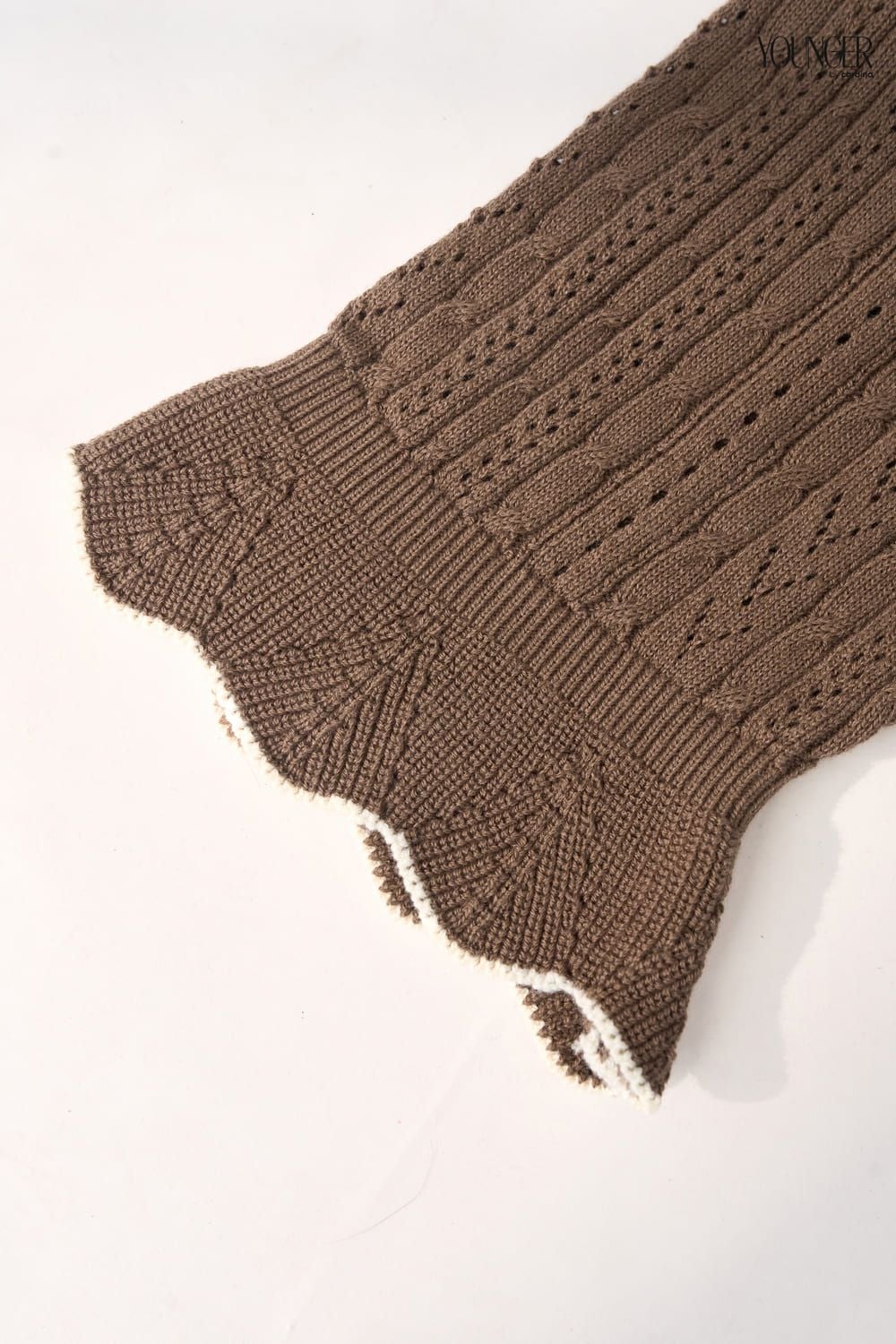 Áo len cotton của Cardina mang lại phong cách ngọt ngào, nữ tính. Chất liệu len cotton mềm, dệt họa tiết lỗ thoáng khí. Thiết kế tay lỡ loe nhẹ, cùng cổ tròn và gấu tay phối viền lượn sóng tinh tế.