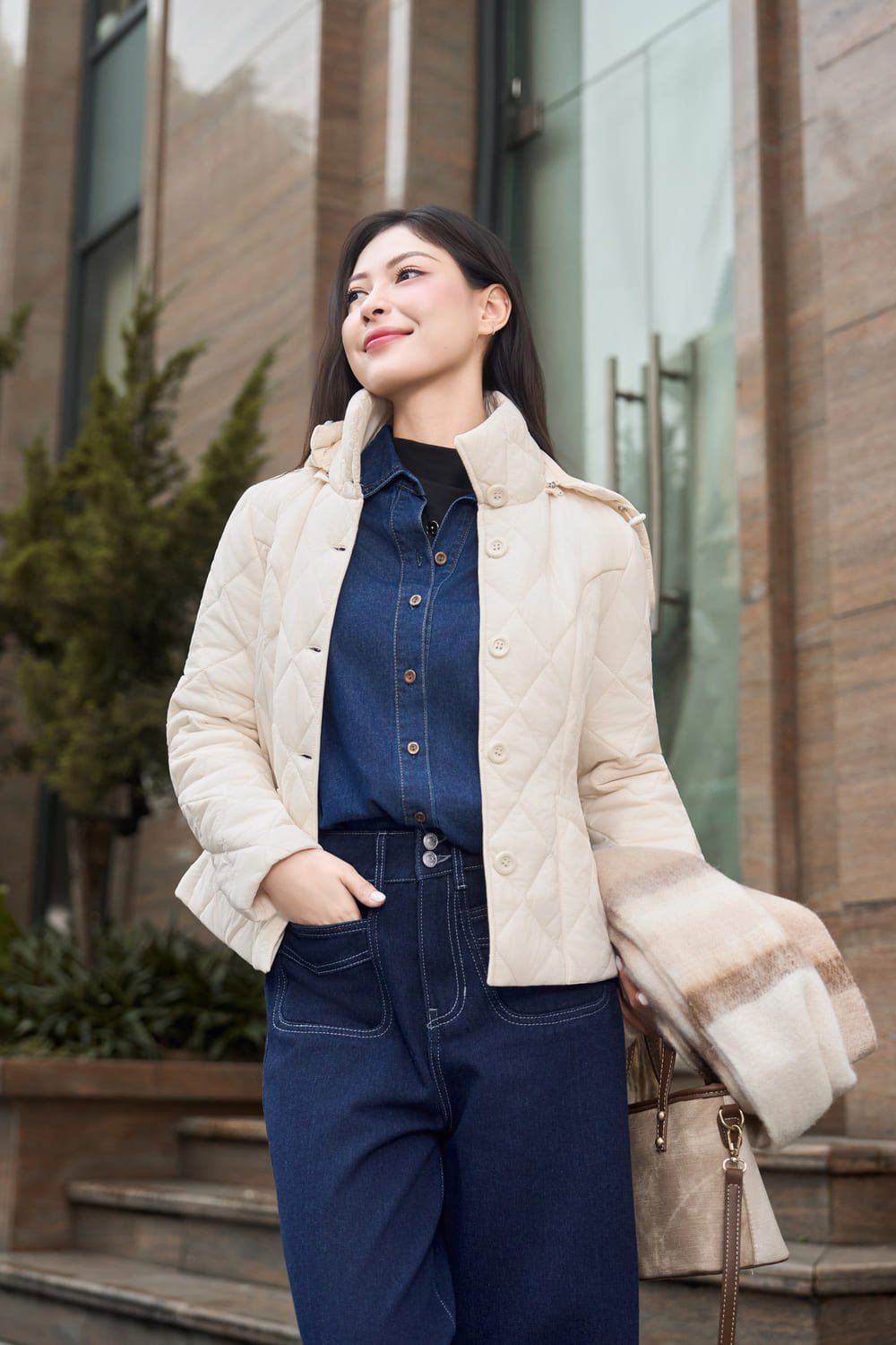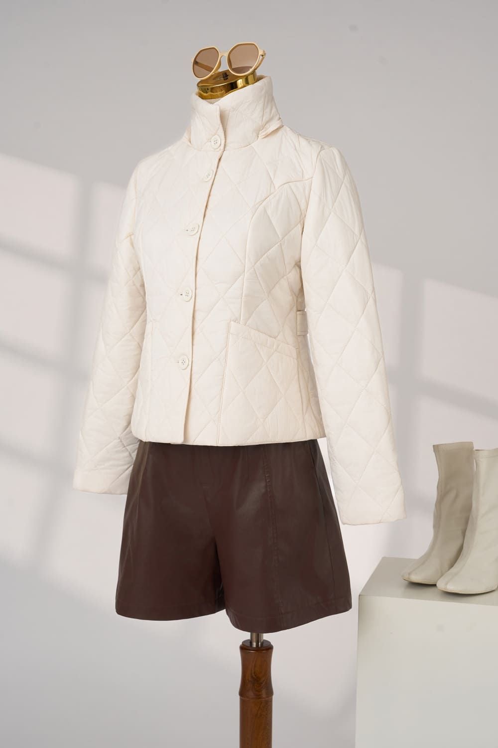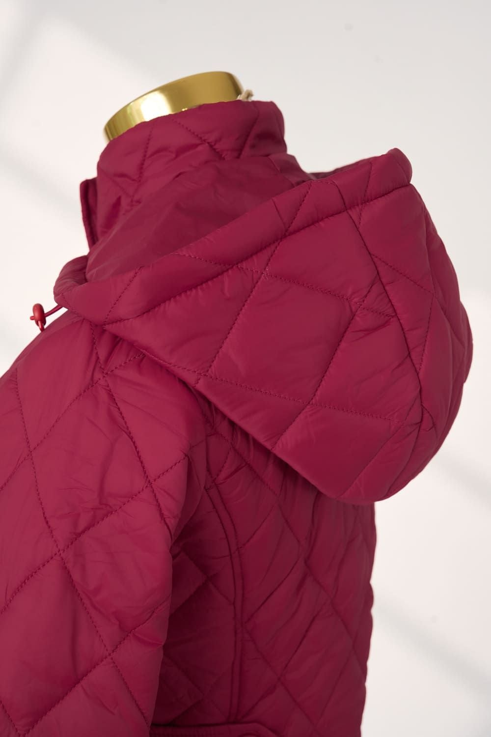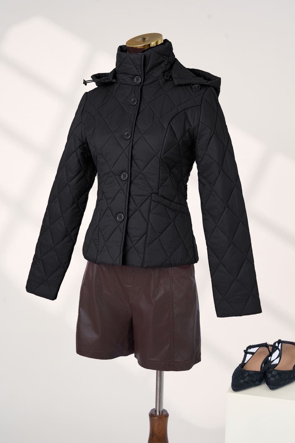 Áo phao chần trám dáng ngắn có mũ