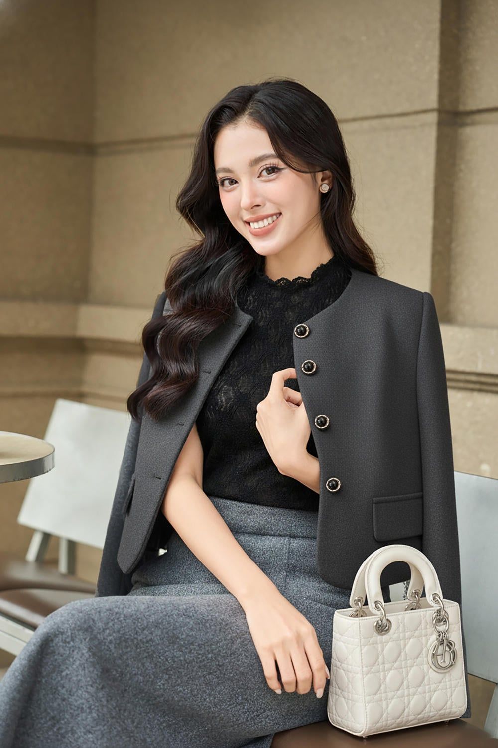 Áo kiểu nữ chất ren nhung dáng sát nách cổ leo sang trọng