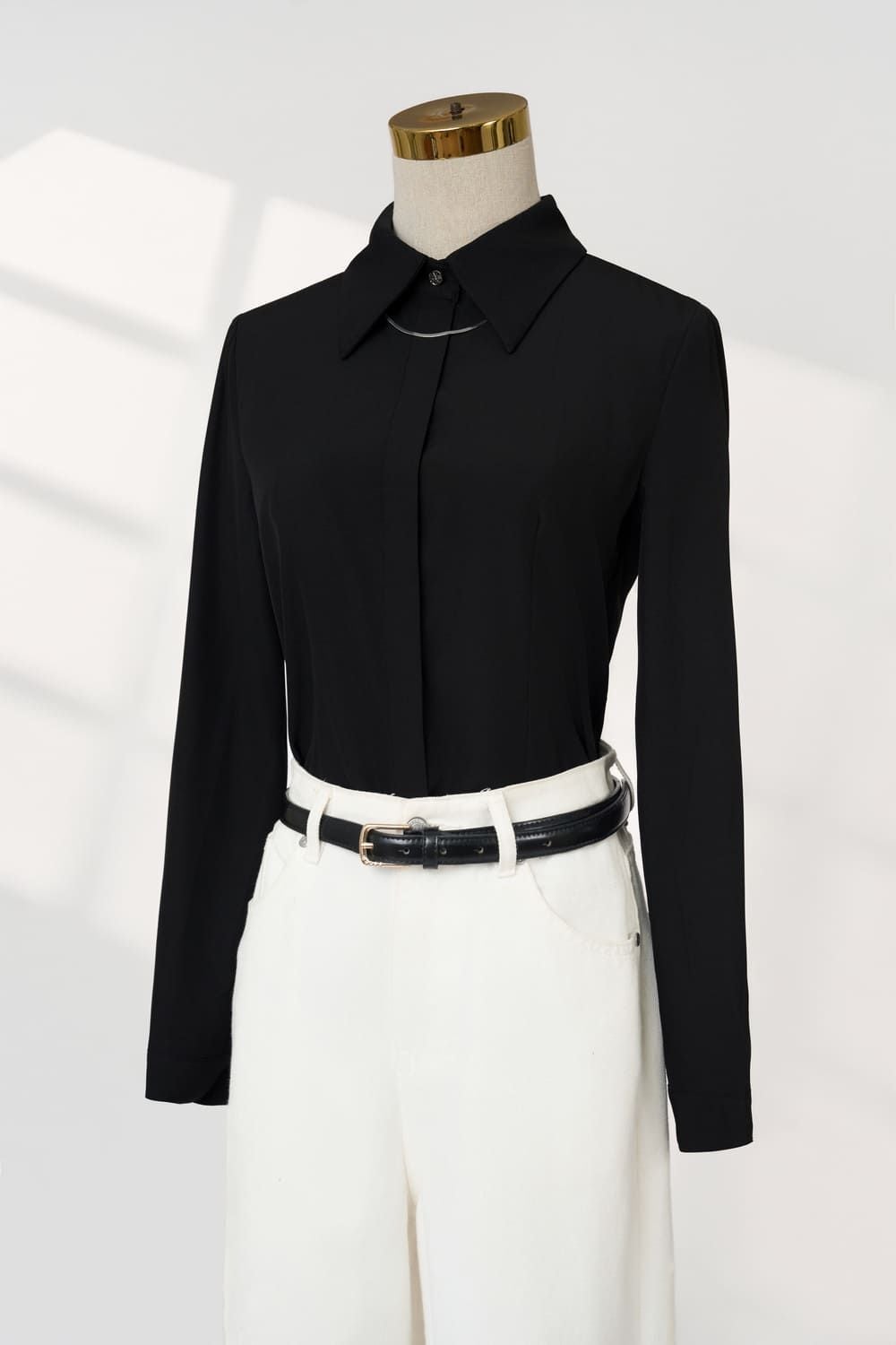 Áo sơ mi nữ dáng suông cổ đức dài tay chất thô tuyết