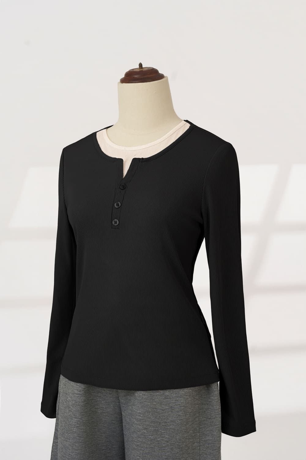 Áo thun nữ chất liệu tăm lạnh dài tay cổ trụ tròn có phối