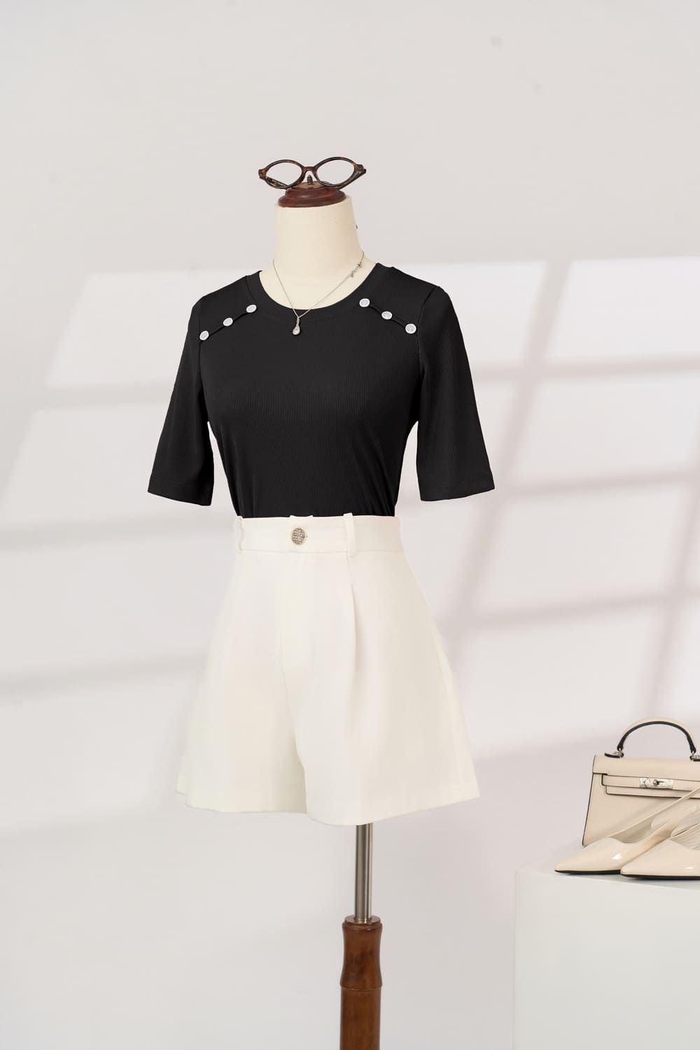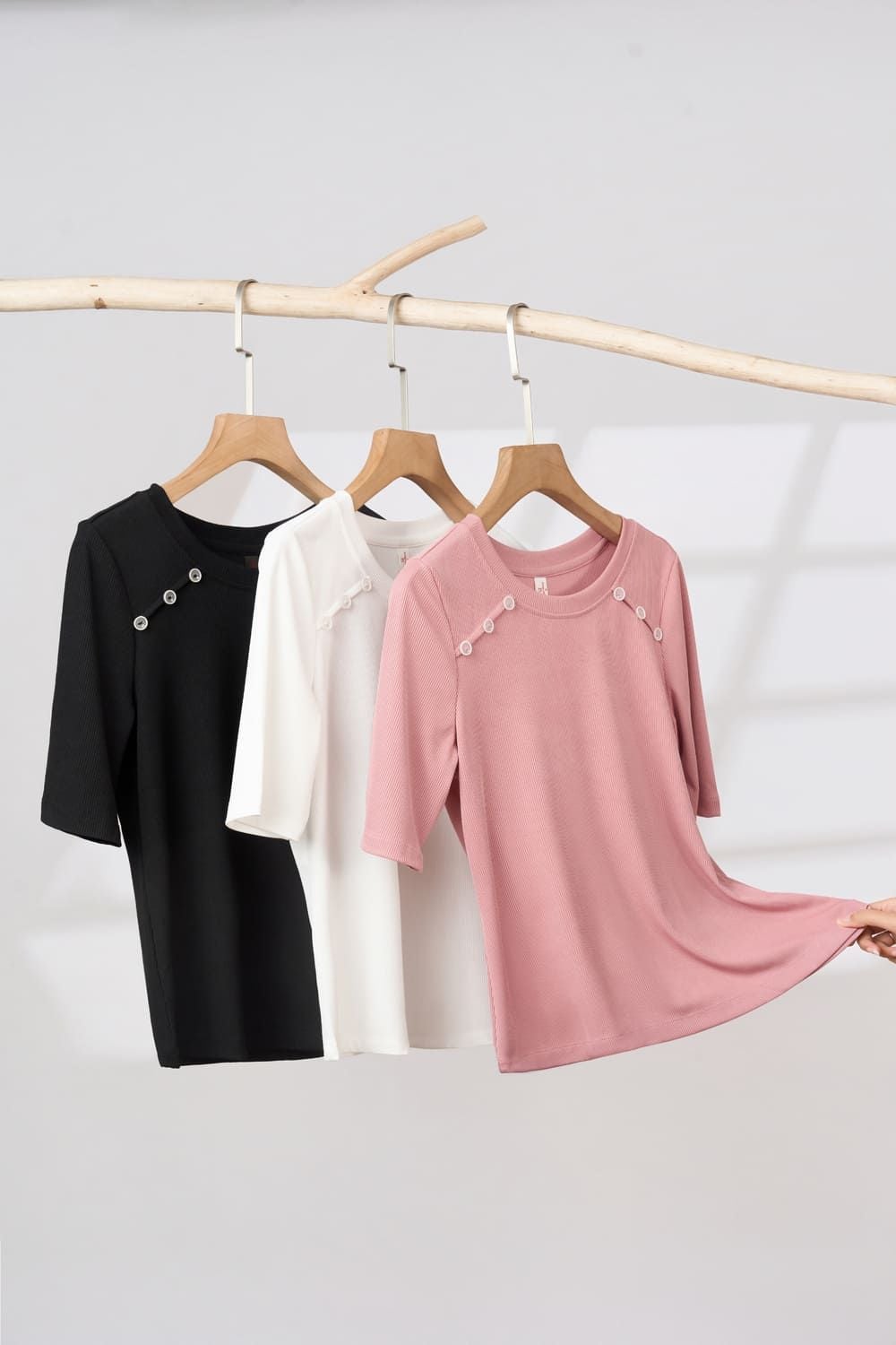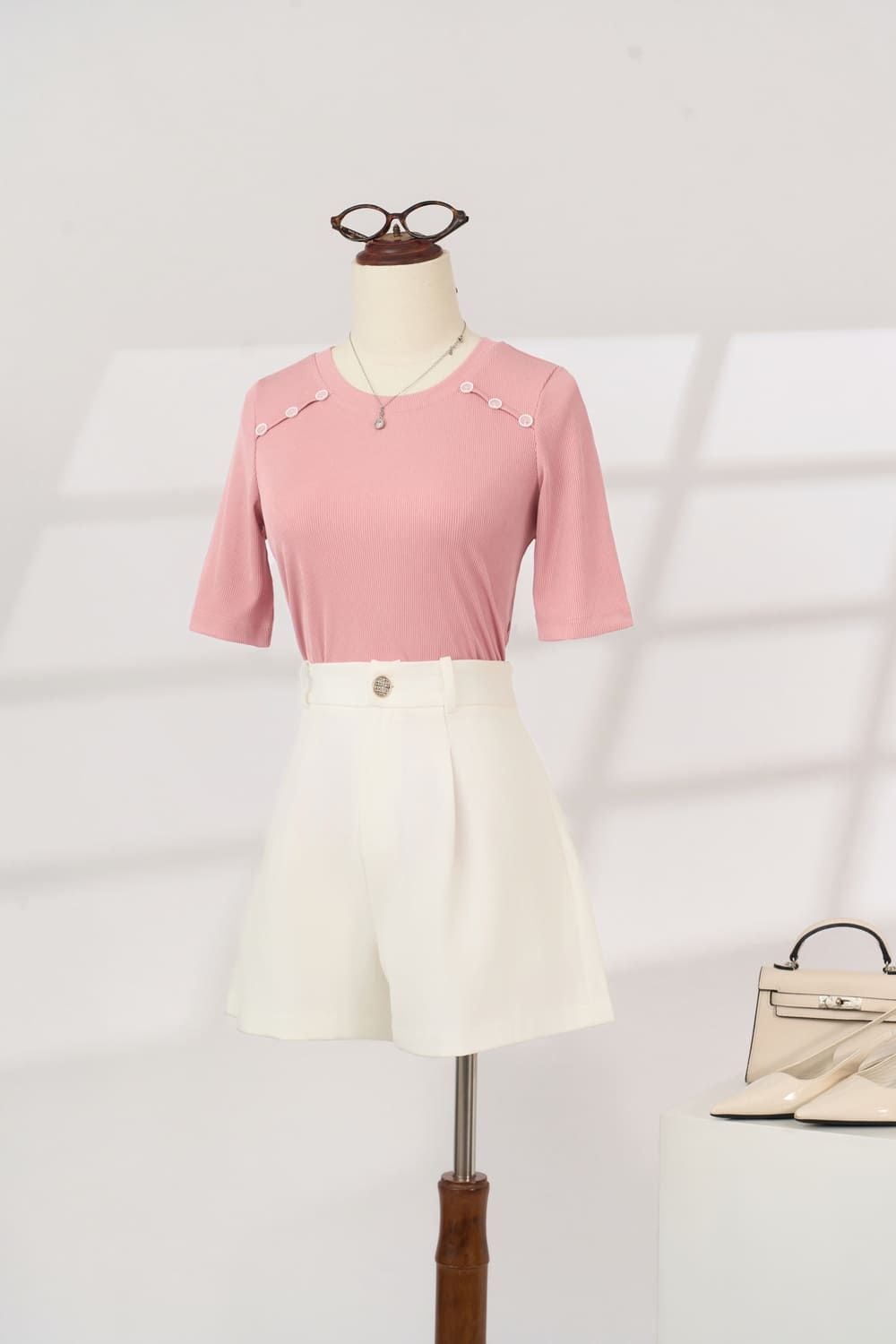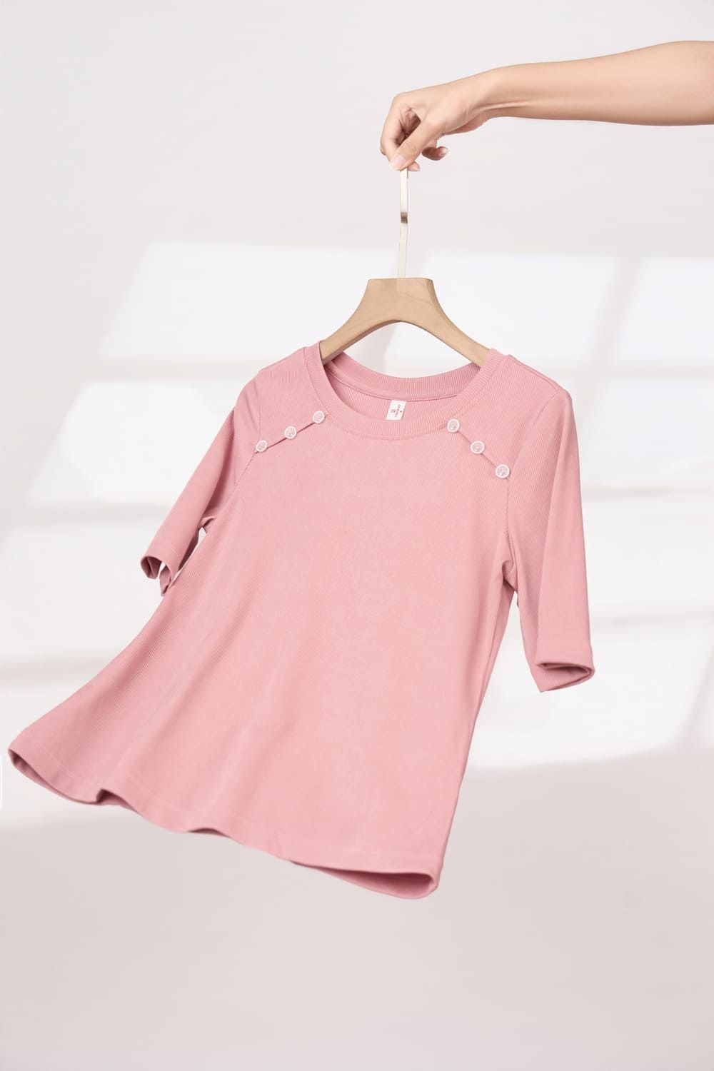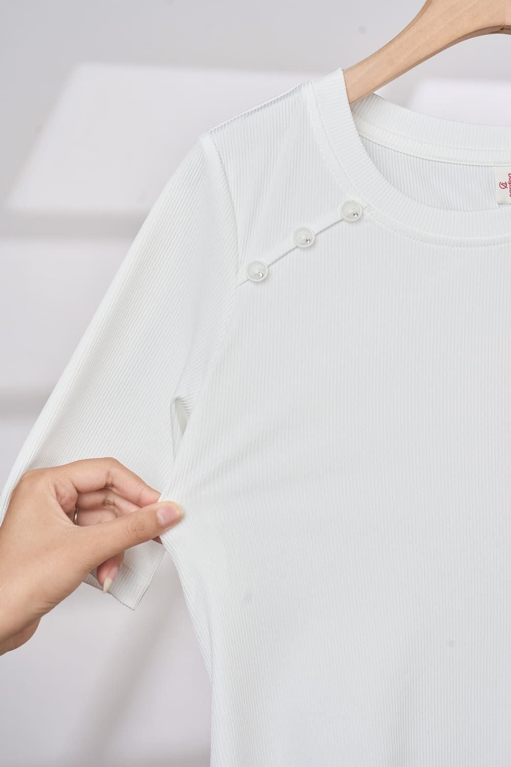 Áo thun nữ Cardina vải tăm tay lỡ cổ tròn cúc vai