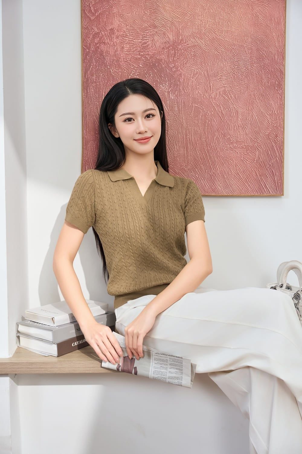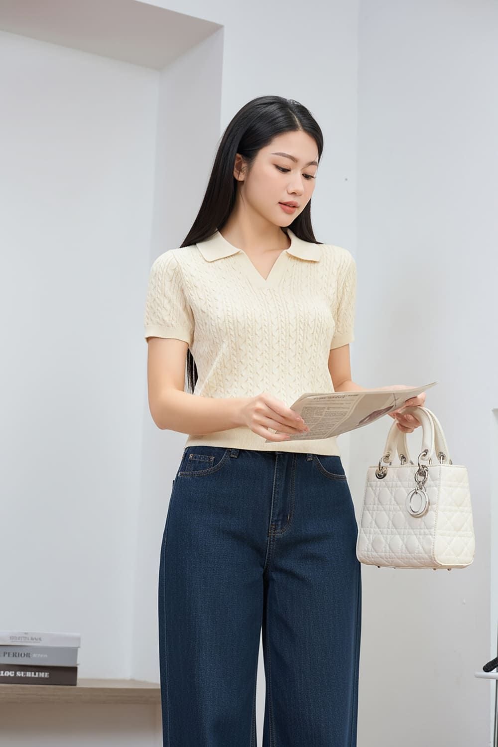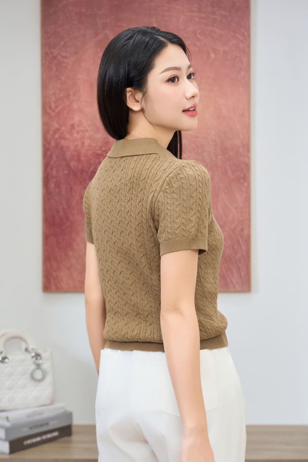 Đón đầu xu hướng với mẫu áo dệt sợi cotton Icesilk siêu mềm, thông hơi và thoáng khí tuyệt đối. Họa tiết dập vặn thừng tinh tế kết hợp cùng cổ Polo V hiện đại tạo nên vẻ ngoài thanh lịch, chỉn chu cho quý cô công sở. Sản phẩm có bảng màu trung tính (Kem, Nâu) thời thượng, dễ dàng kết hợp cùng quần âu hay chân váy để nâng tầm diện mạo. Thêm vào giỏ hàng ngay để khẳng định gu thời trang tinh tế!