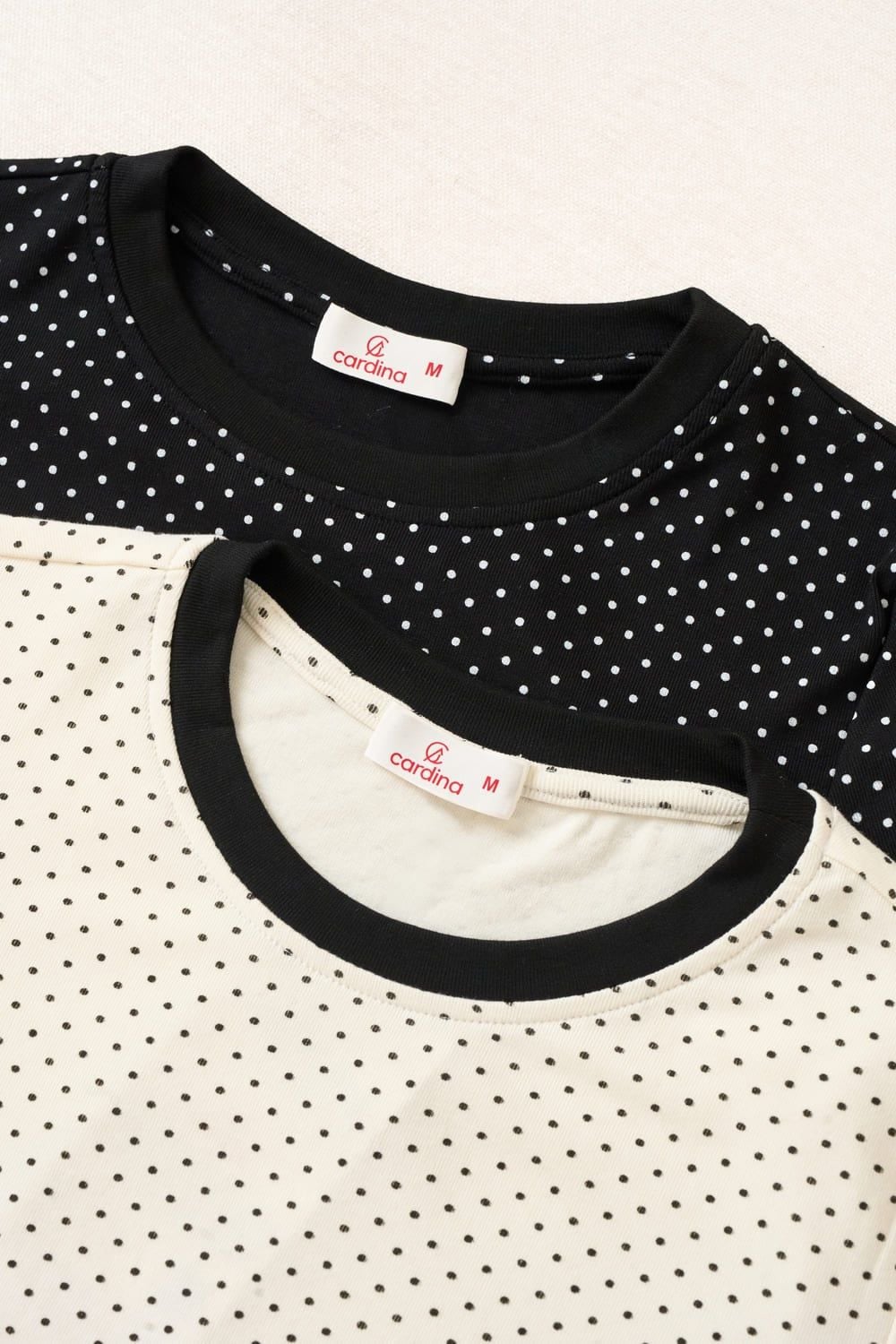 Áo phông Cotton Zip phối viền cổ tròn họa tiết chấm bi