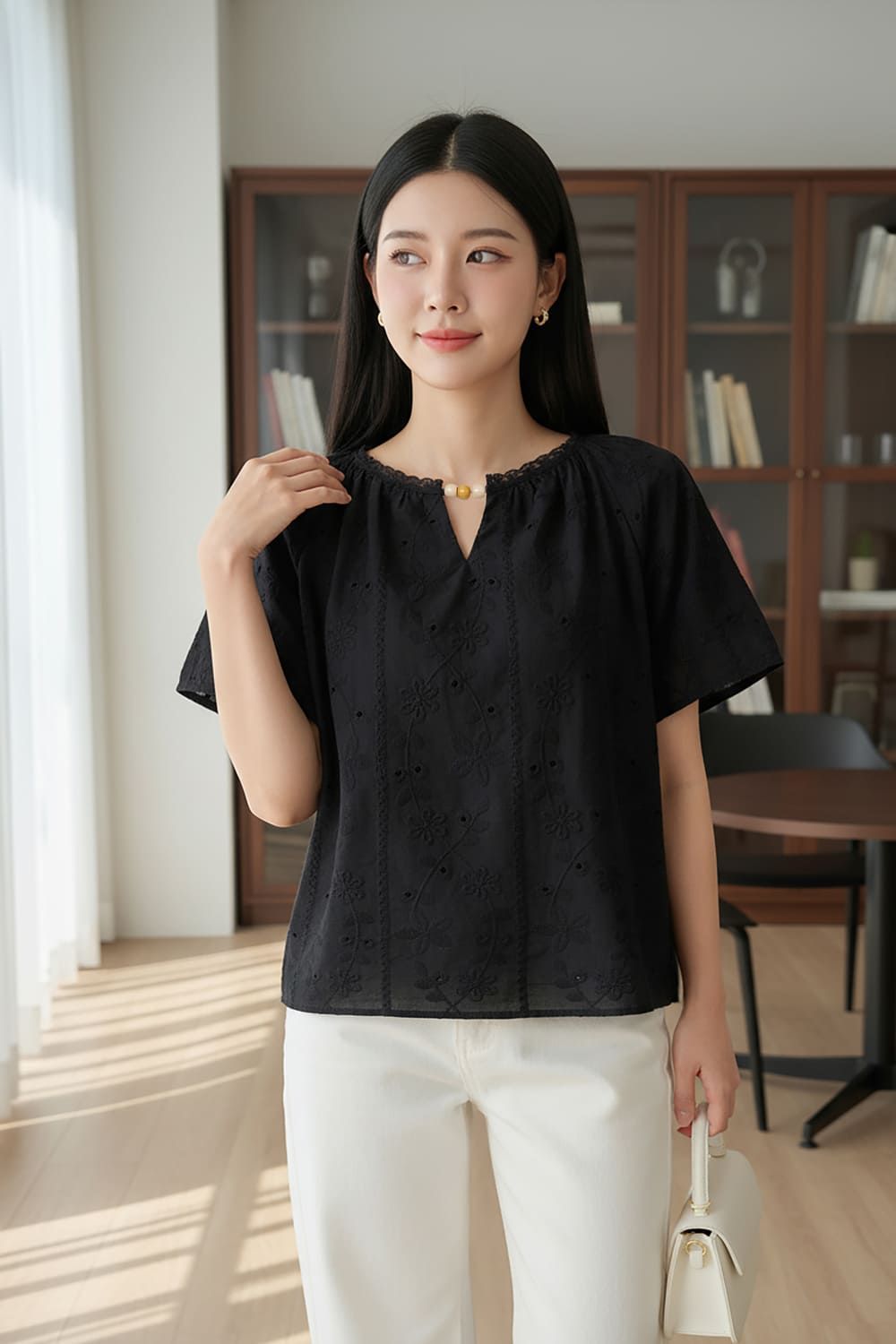 Đón đầu xu hướng với chất liệu thô thêu cao cấp, thoáng mát và thấm hút mồ hôi cực tốt. Họa tiết thêu tỉ mỉ phối cùng chi tiết hạt trang trí ở cổ tạo nên sức hút độc đáo. Kiểu dáng tay cộc năng động, phù hợp diện đi làm hay dạo phố cuối tuần. Sắm ngay kẻo lỡ item cực hot này nhé!