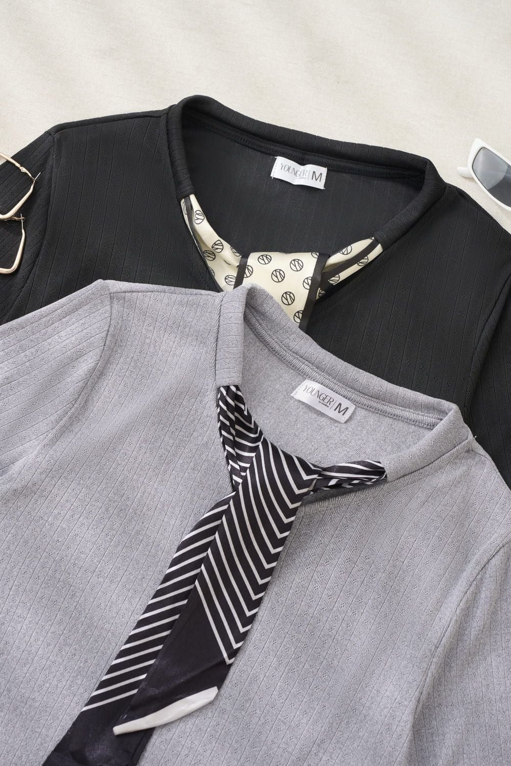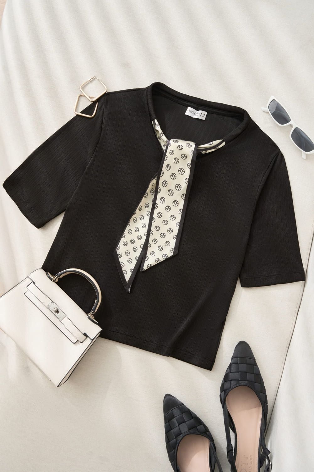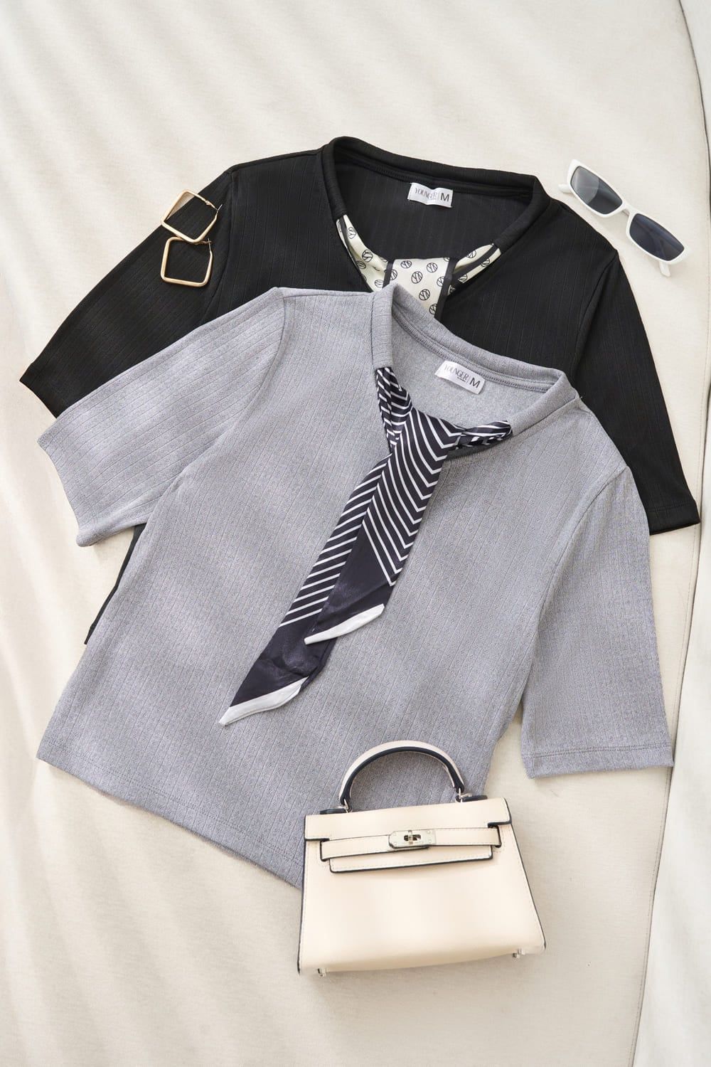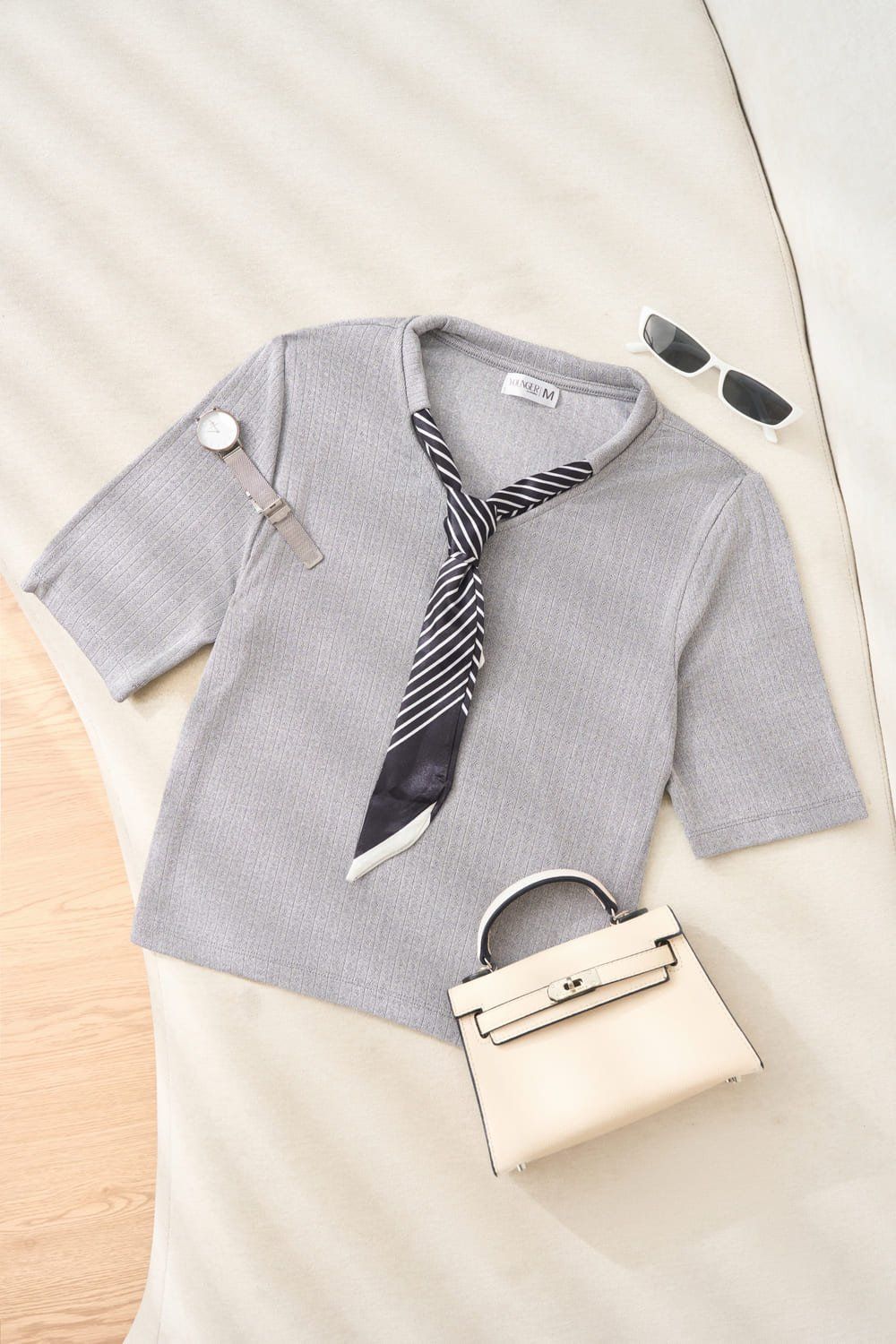 Áo thun tăm nữ Cardina tay lỡ cổ mix khăn