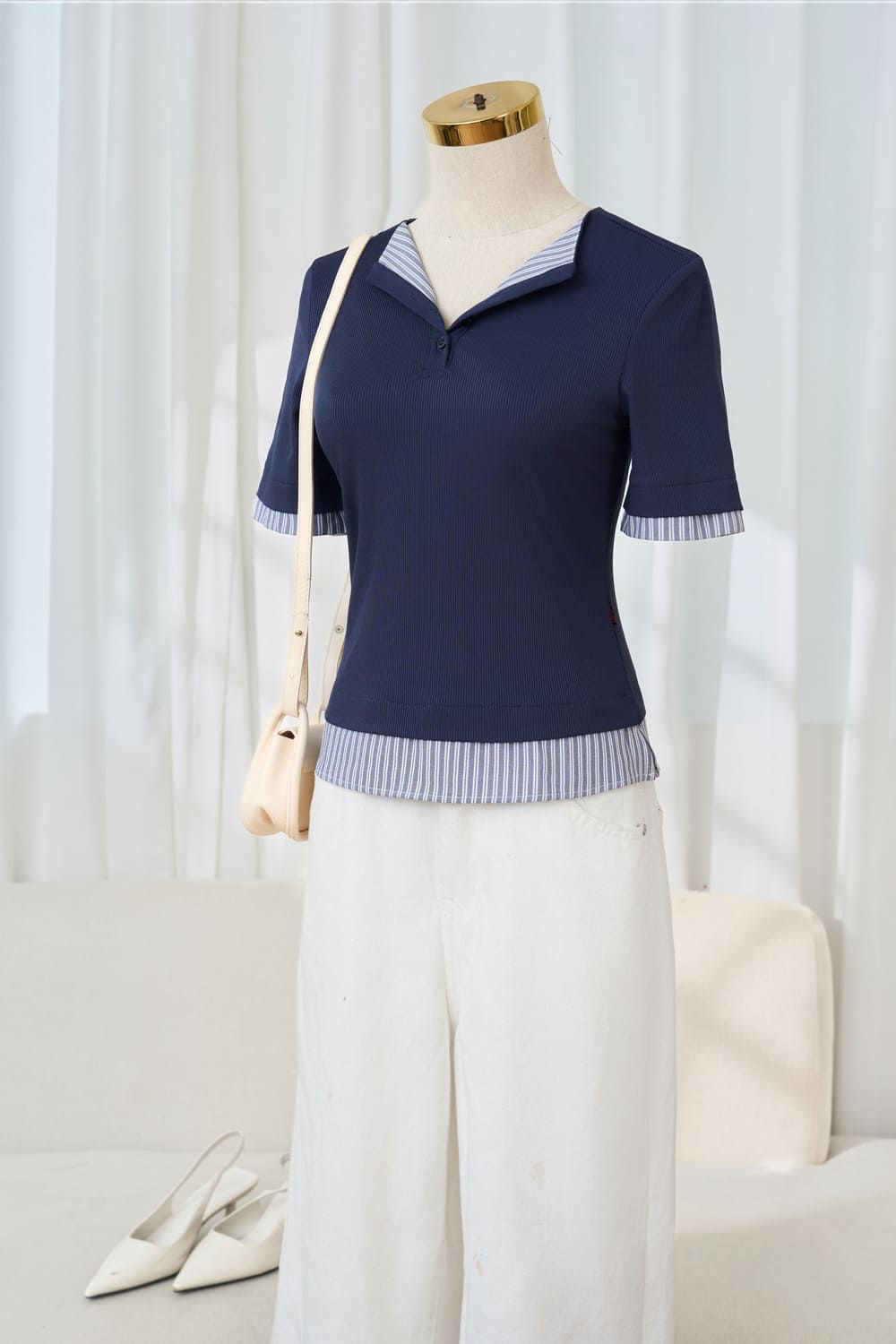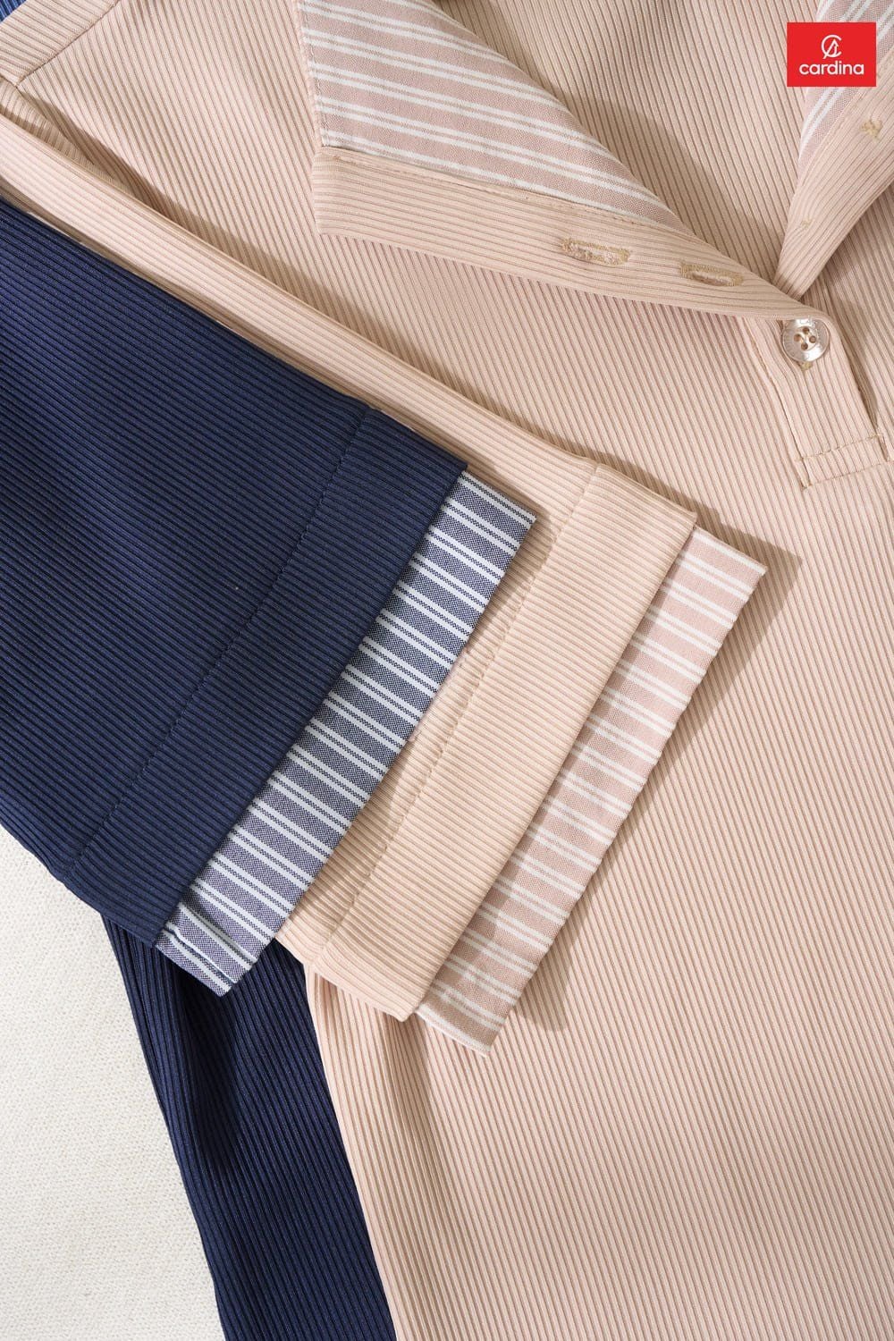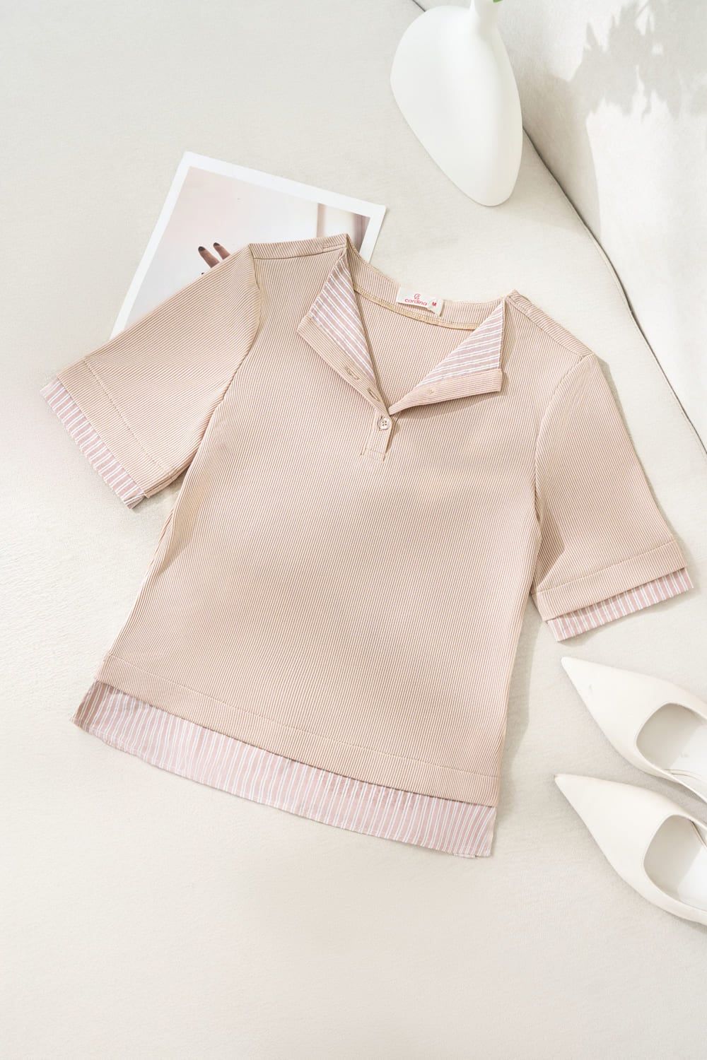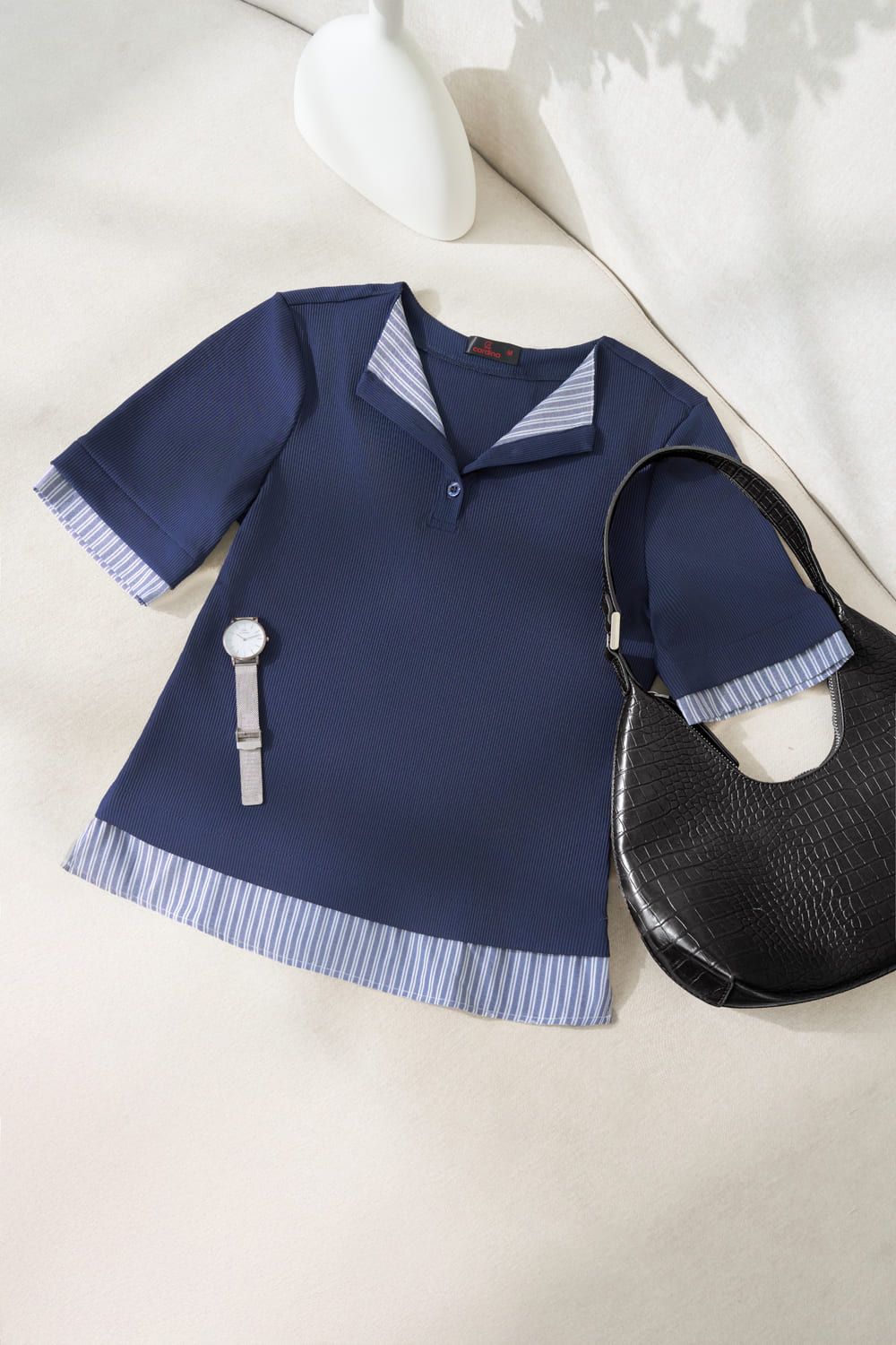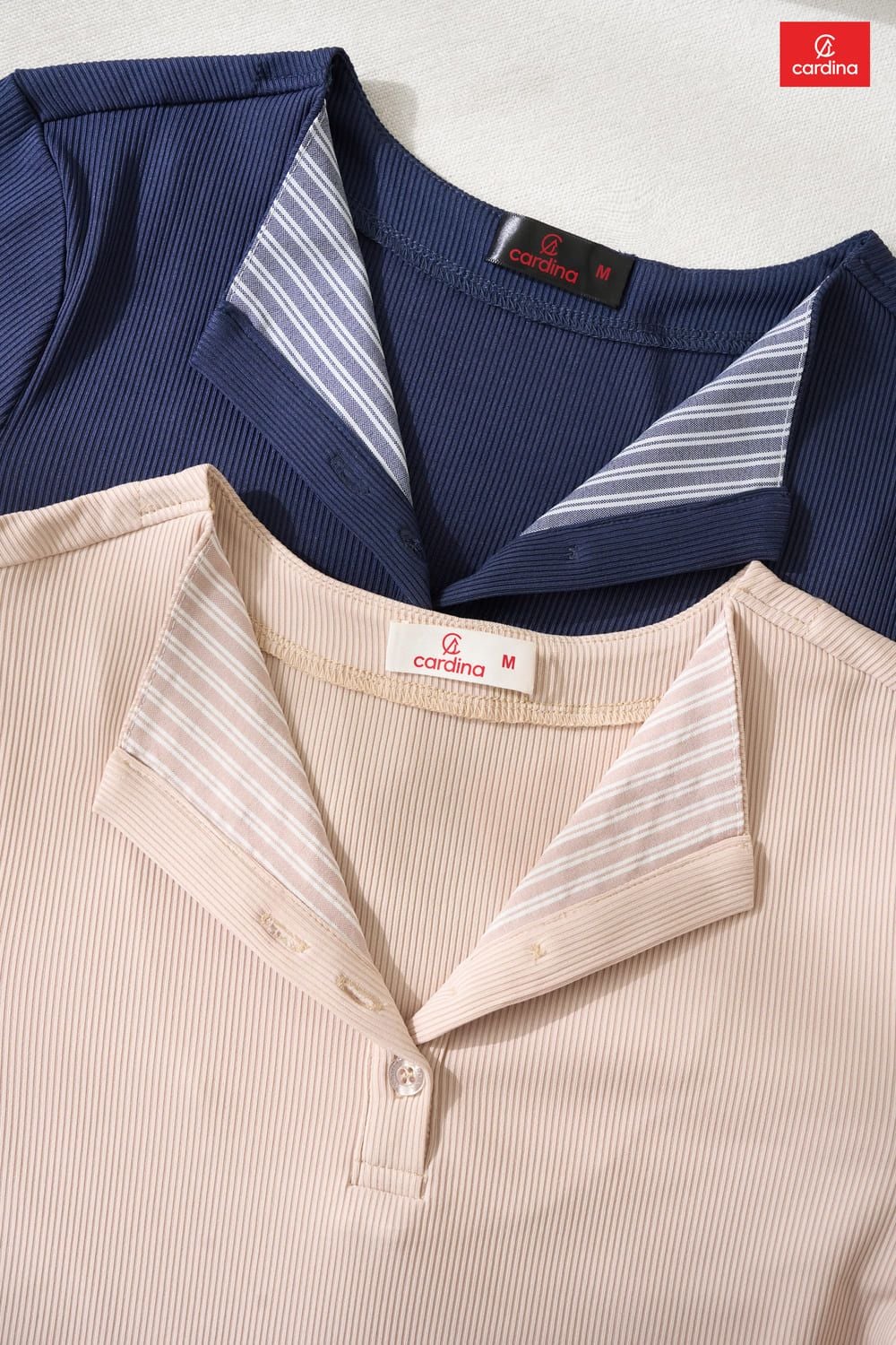 Áo thun nữ dáng tay lỡ có phối kẻ chất tăm lạnh