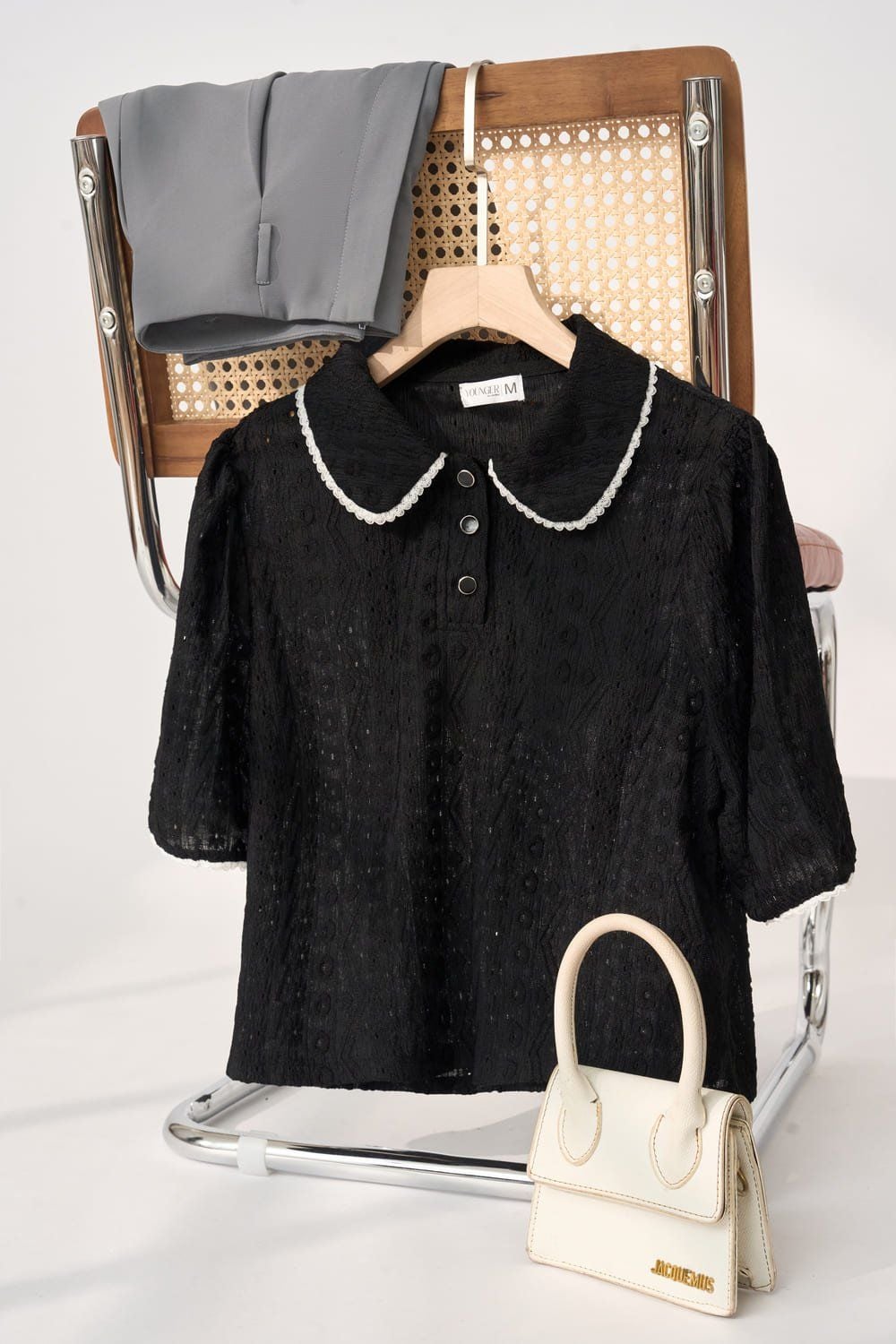 Áo phông nữ tay lỡ cổ sen phối viền ren