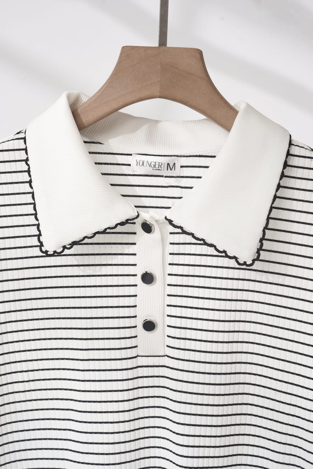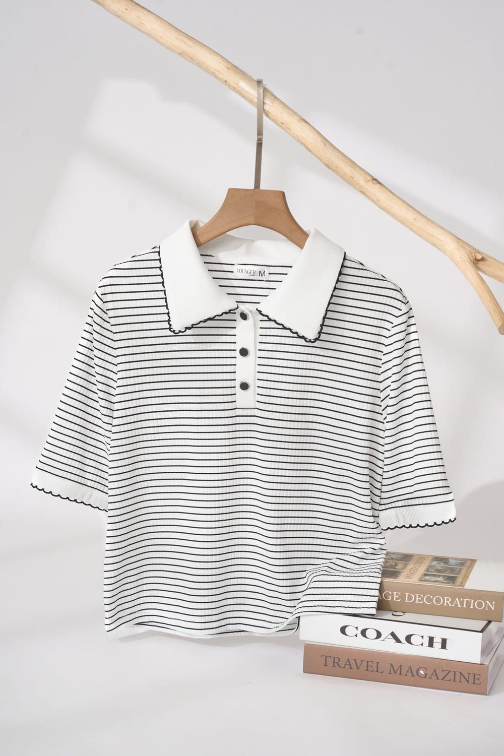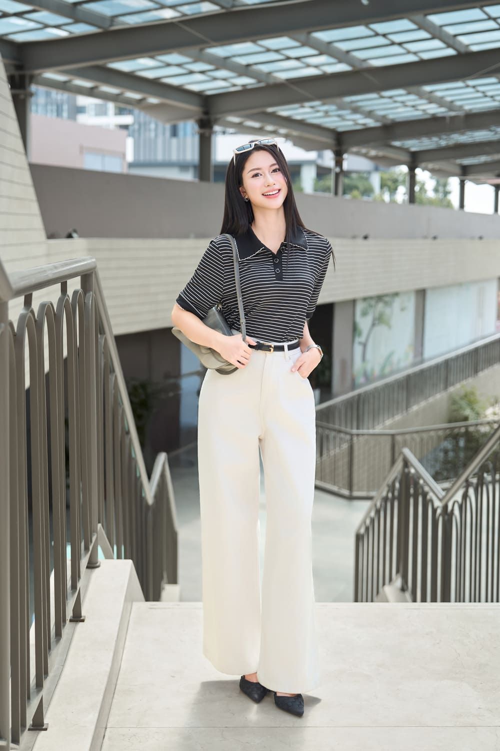 Áo thun gân của Cardina mang đến phong cách thanh lịch, cổ điển và trẻ trung. Chất liệu thun gân cao cấp, co giãn tốt, thoáng mát, tạo cảm giác thoải mái khi mặc. Thiết kế tay lỡ phóng khoáng, điểm nhấn là cổ áo kẹp viền ren tinh tế (kiểu cổ Peter Pan nhỏ), cùng hàng cúc polo thời trang, tạo vẻ ngoài duyên dáng và nổi bật. Sản phẩm dễ dàng phối cùng quần âu, chân váy, phù hợp cho mọi dịp dạo phố hay đi làm. Sắm ngay để sở hữu item độc đáo này!