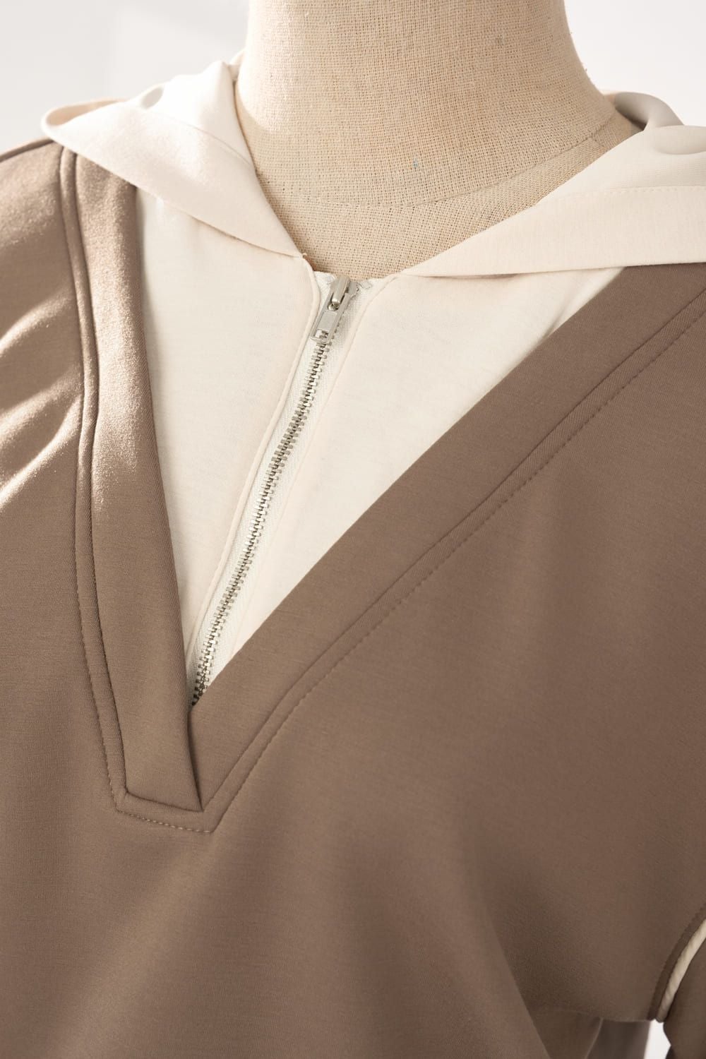 Áo thể thao nữ Cardina vải umi cổ V kéo khóa có mũ