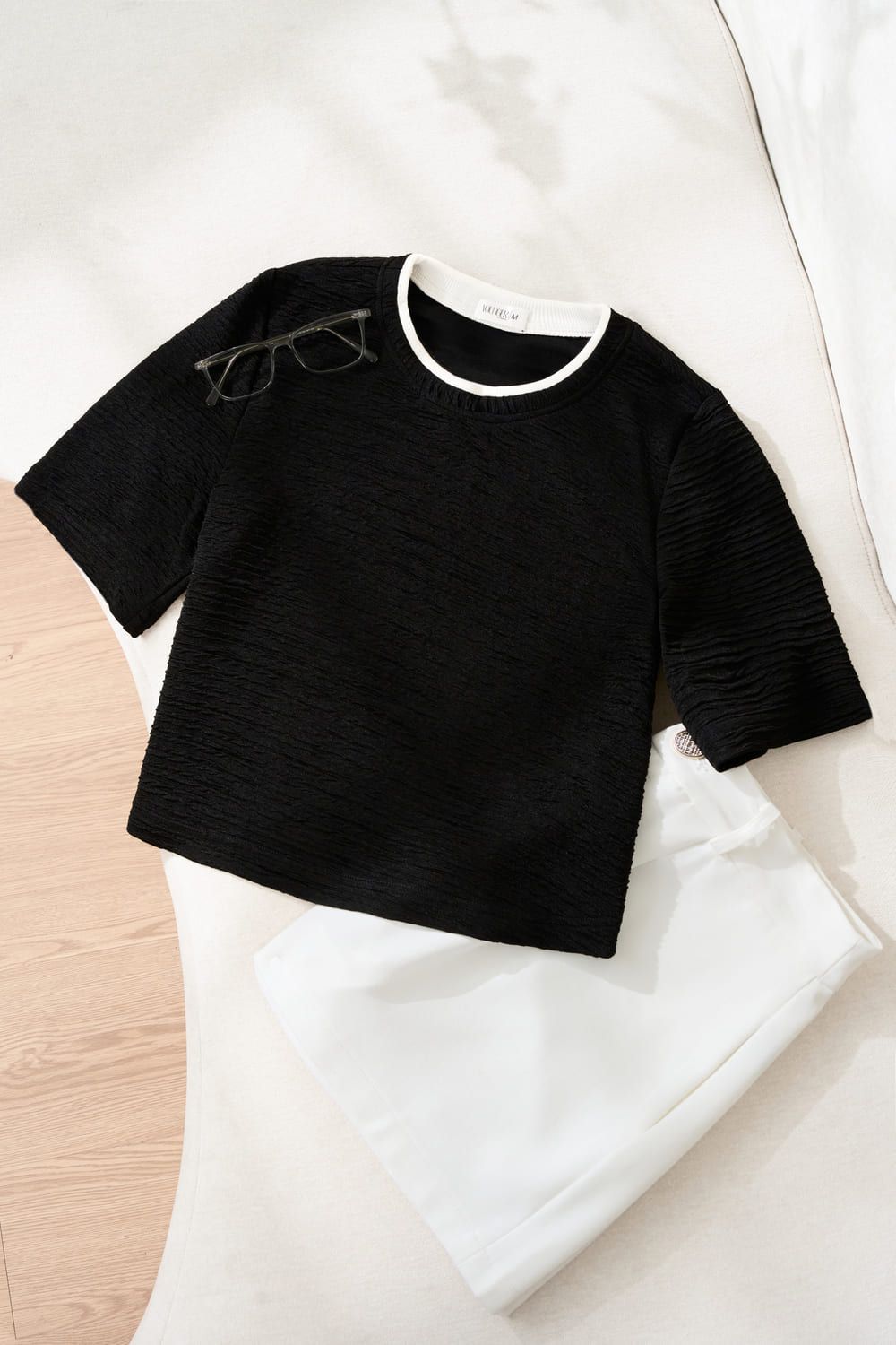 Áo thun tay lỡ phối cổ chất thun gân