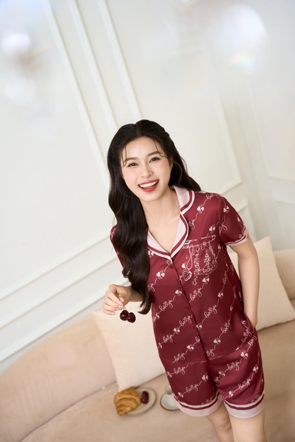 Bộ Pijama đùi cộc tay LOVE chất lụa Satin mềm mại, họa tiết