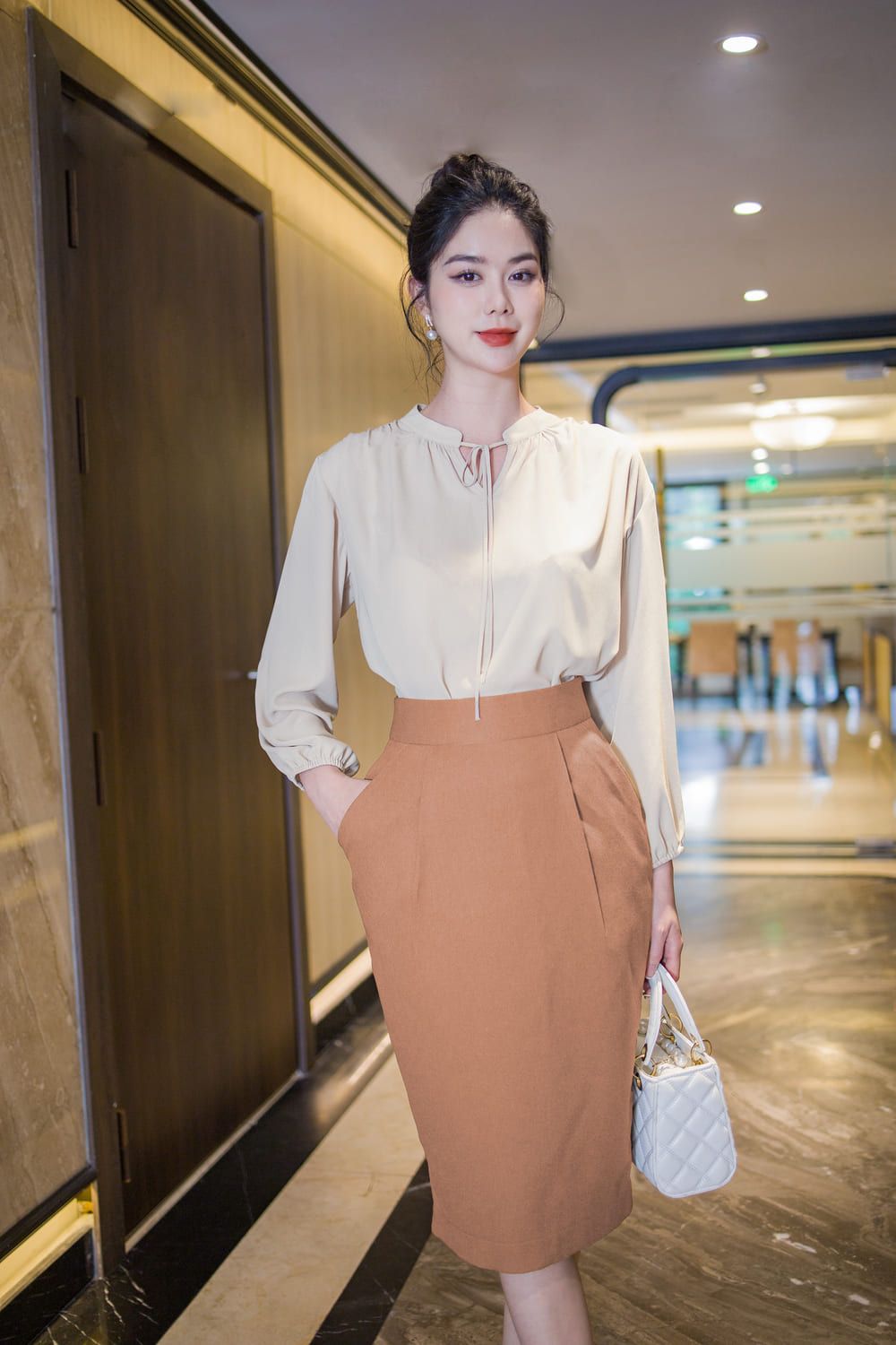 Chân váy bút chì cạp cao vải tuyết mưa Hàn Cardina