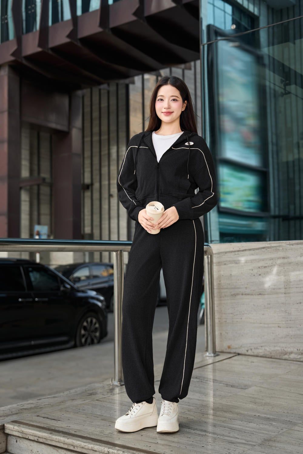 Quần dài nỉ cừu bo gấu cạp chun phối lé năng động