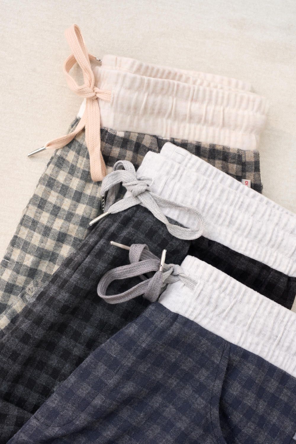 Quần dài nữ vải dạ kẻ dáng suông cạp chun dây rút