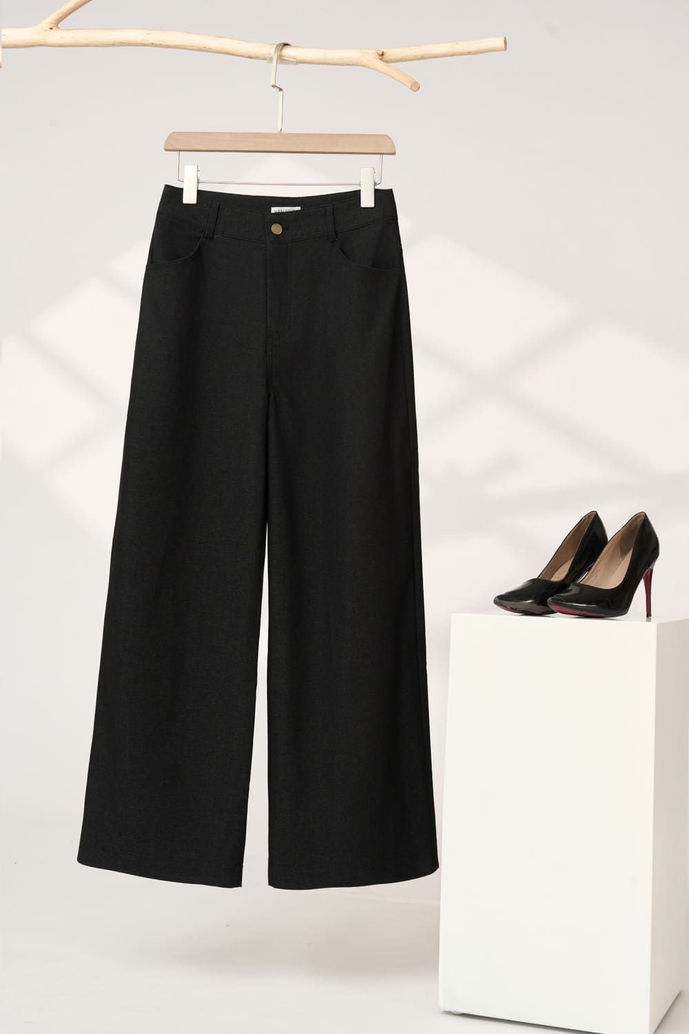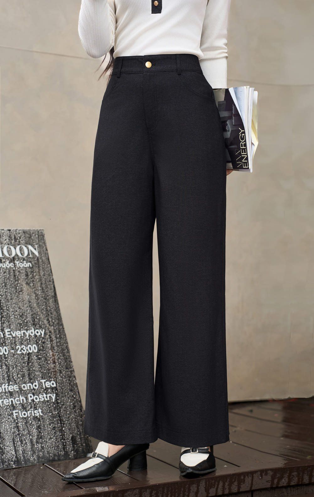 Quần nữ vải denim mềm dáng suông dài cạp cao