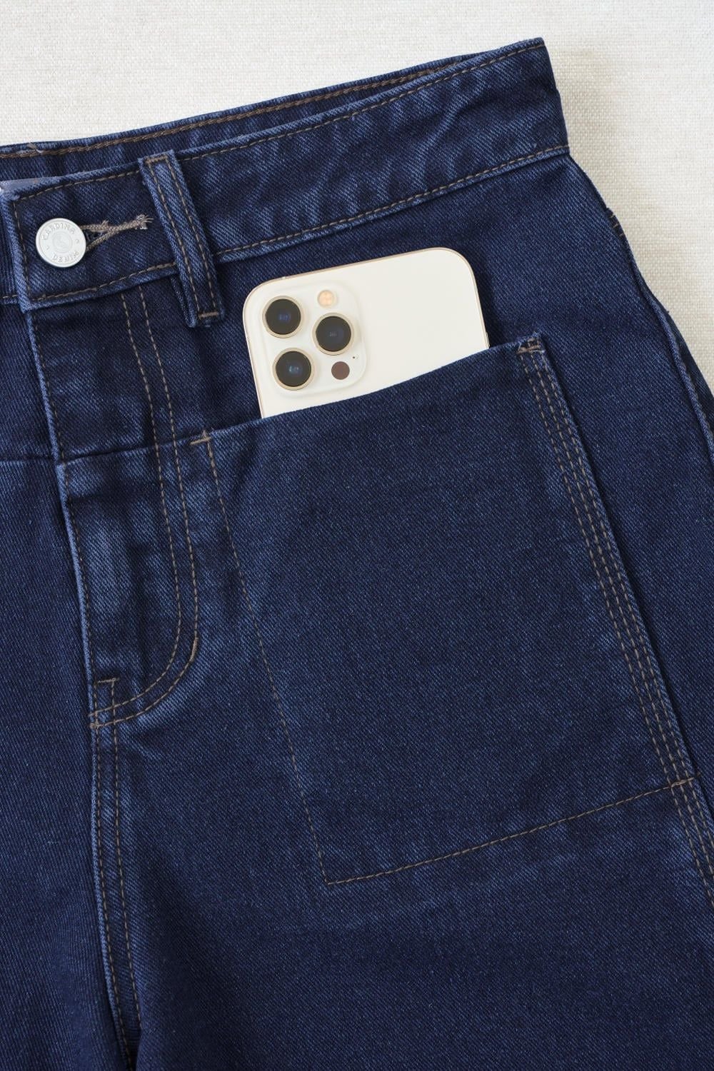 Quần jean nữ vải denim dáng ống suông túi ốp thời thượng