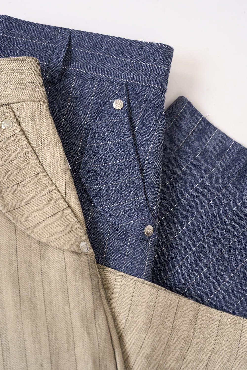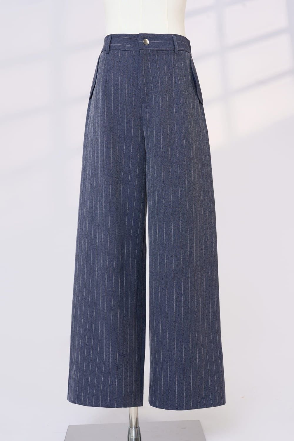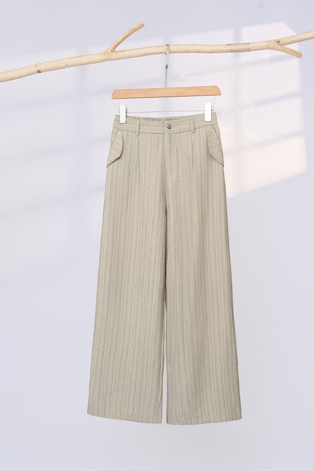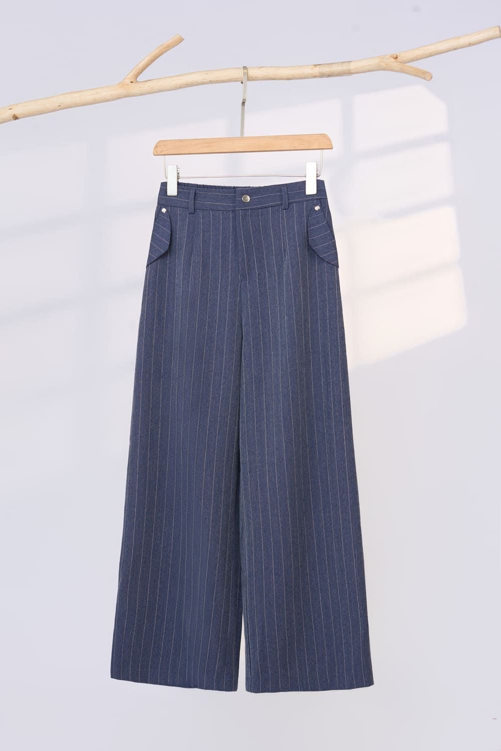 Quần tuýt si kẻ dáng suông cạp cao túi lật