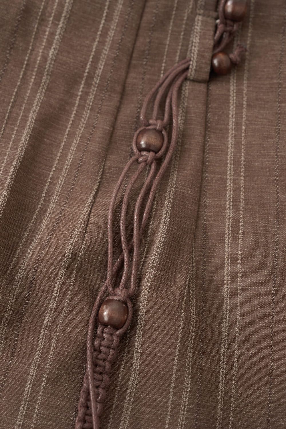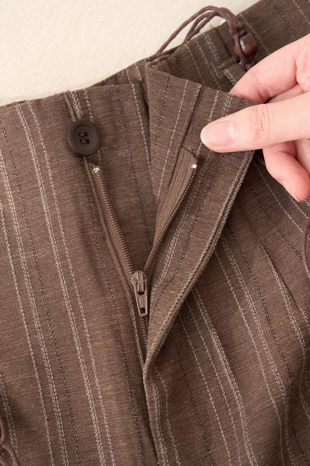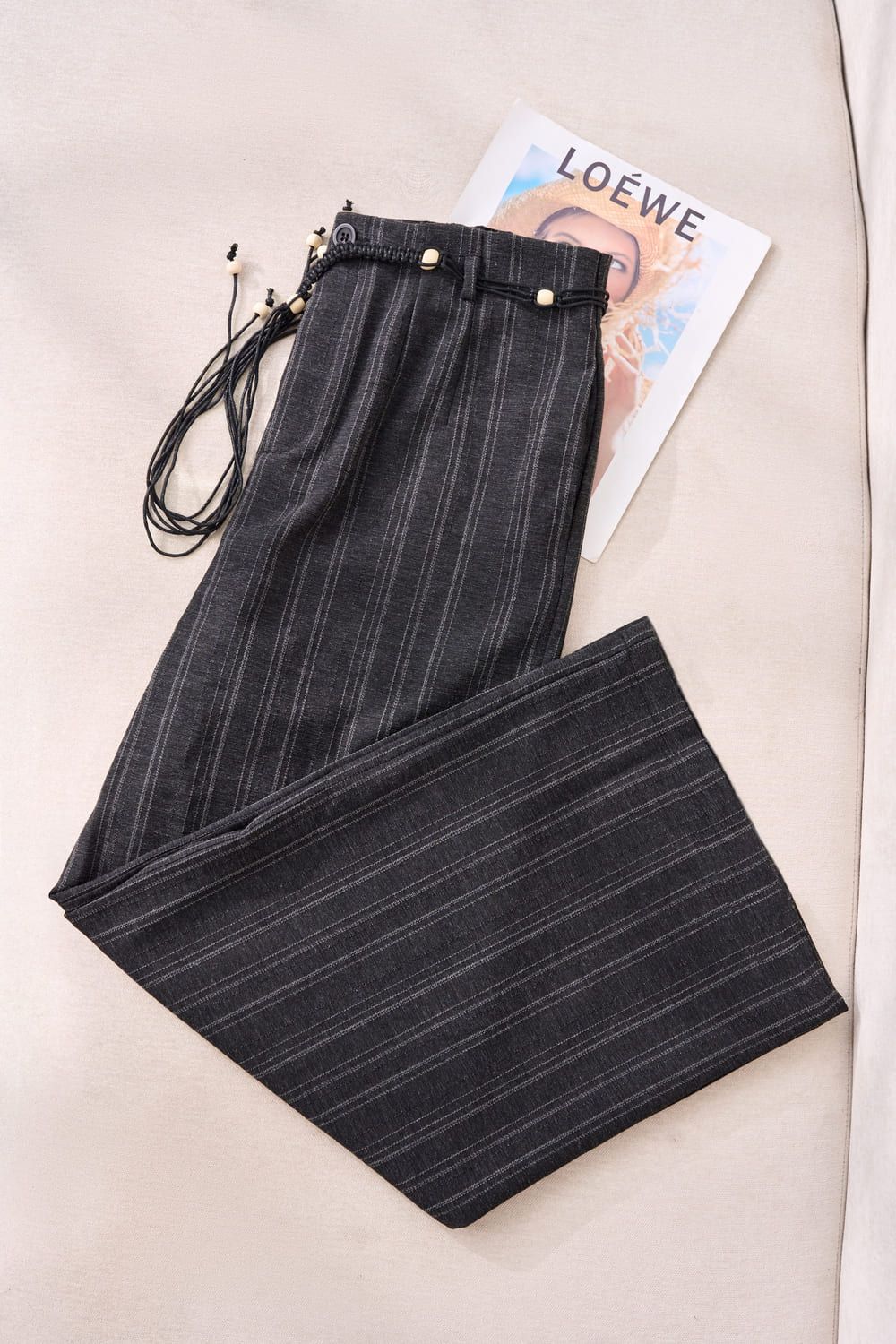 Quần dài thô kẻ dáng suông cạp liền dây đai