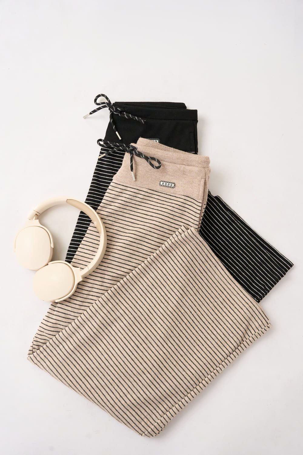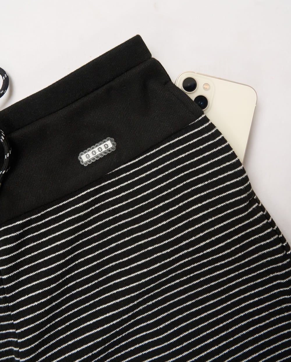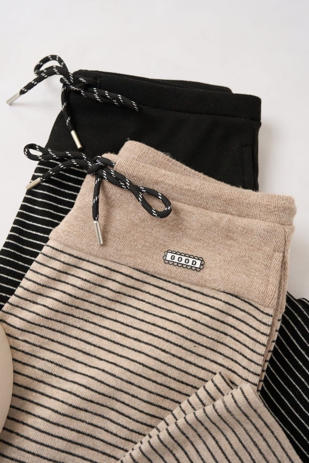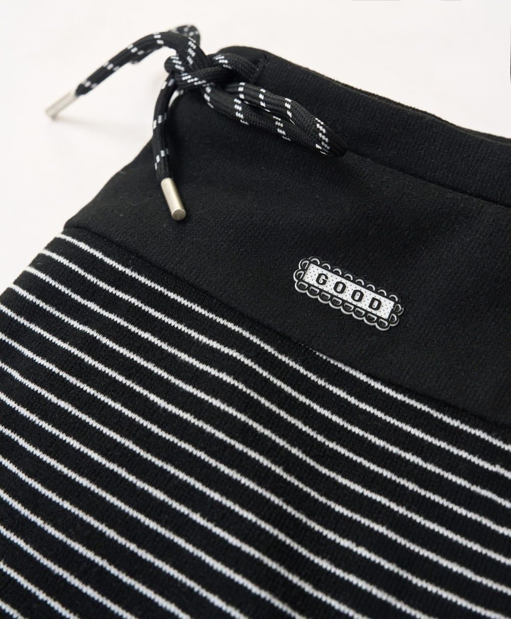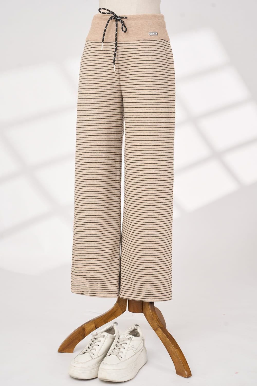 Quần suông cạp phối hông vải Nỉ kẻ ngang ấm áp cạp chun có dây điều chỉnh