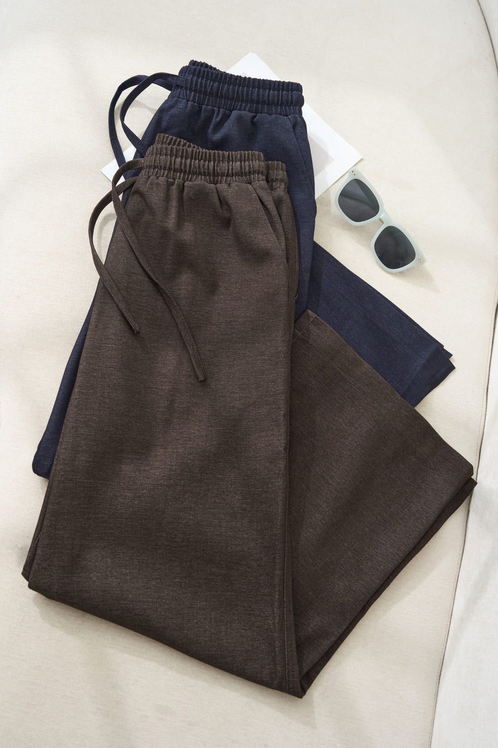 Quần suông dài cạp chun rút dây chất denim sóng dày dặn